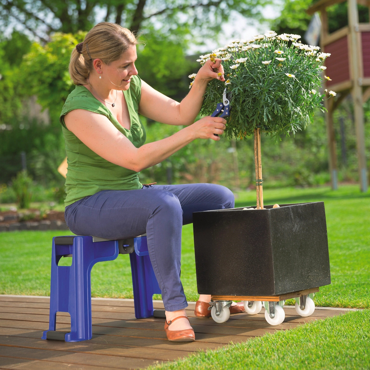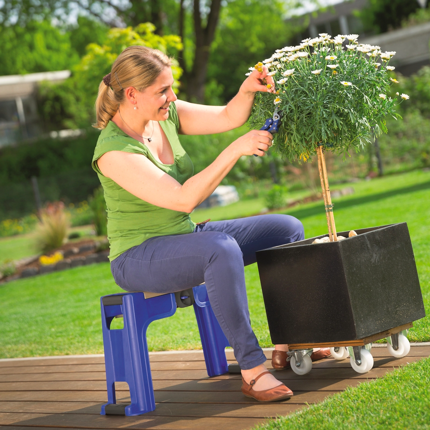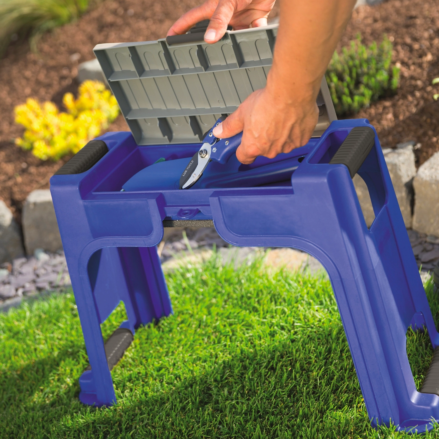 Табурет LUX-TOOLS используется, как вспомогательное изделие в садово-огородных работах.