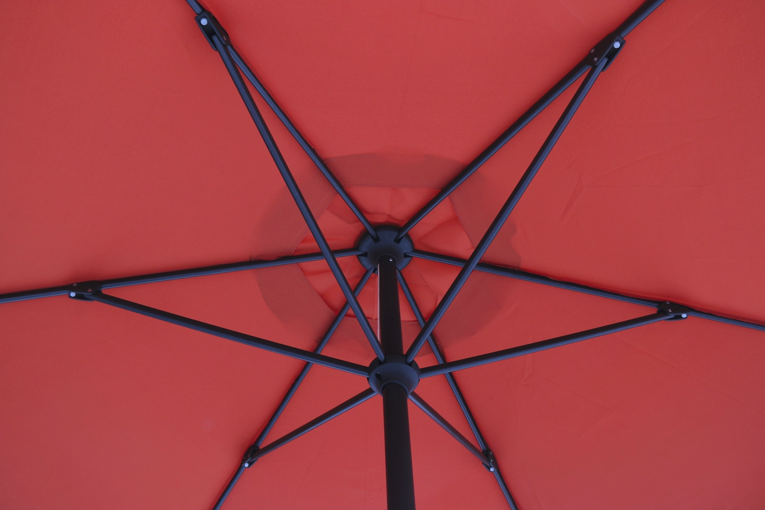 - Купол выполнен из плотного полиэстера яркого терракотового цвета с солнцезащитным фактором UV 50+.