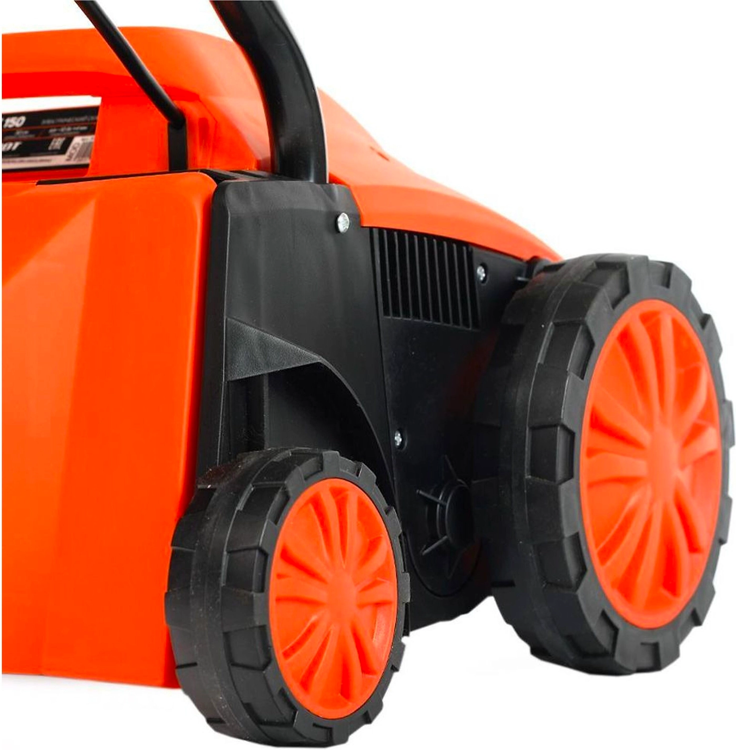 - Аппарат снабжен двумя парами колес для удобного перемещения по газону.