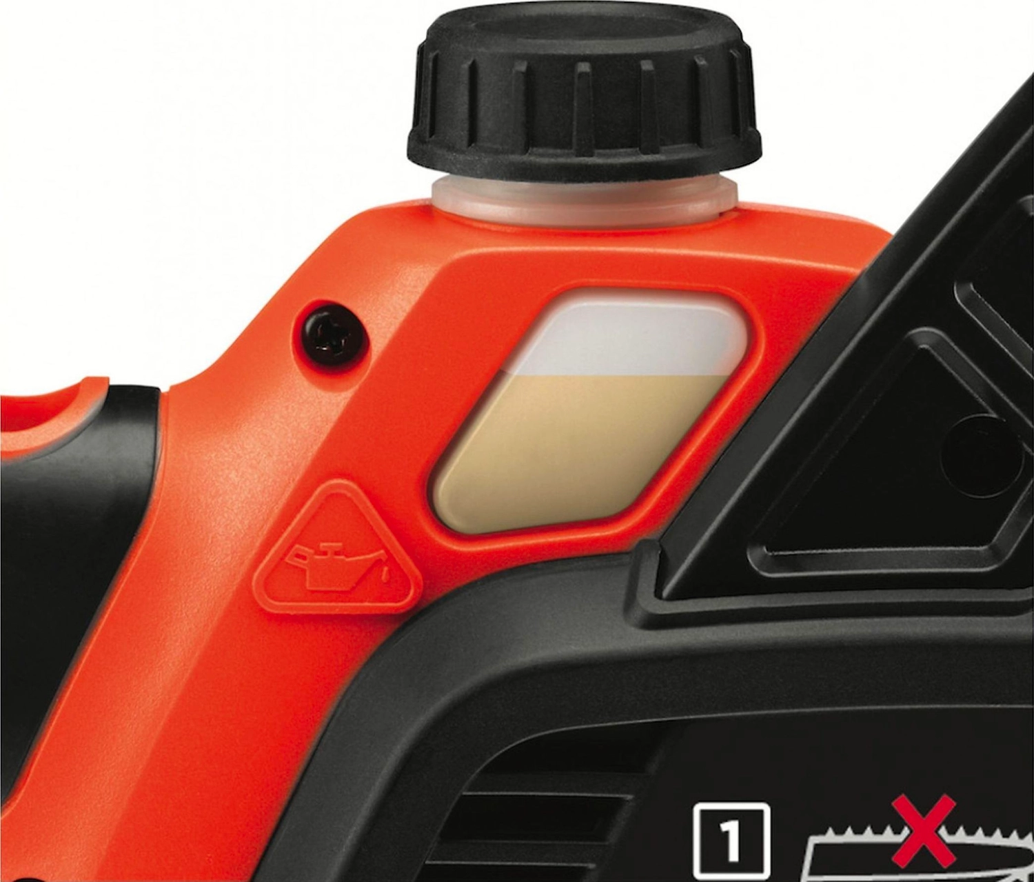 - Мерный глазок позволяет следить за уровнем масла для цепи, что позитивно сказывается на сроке службы инструмента.