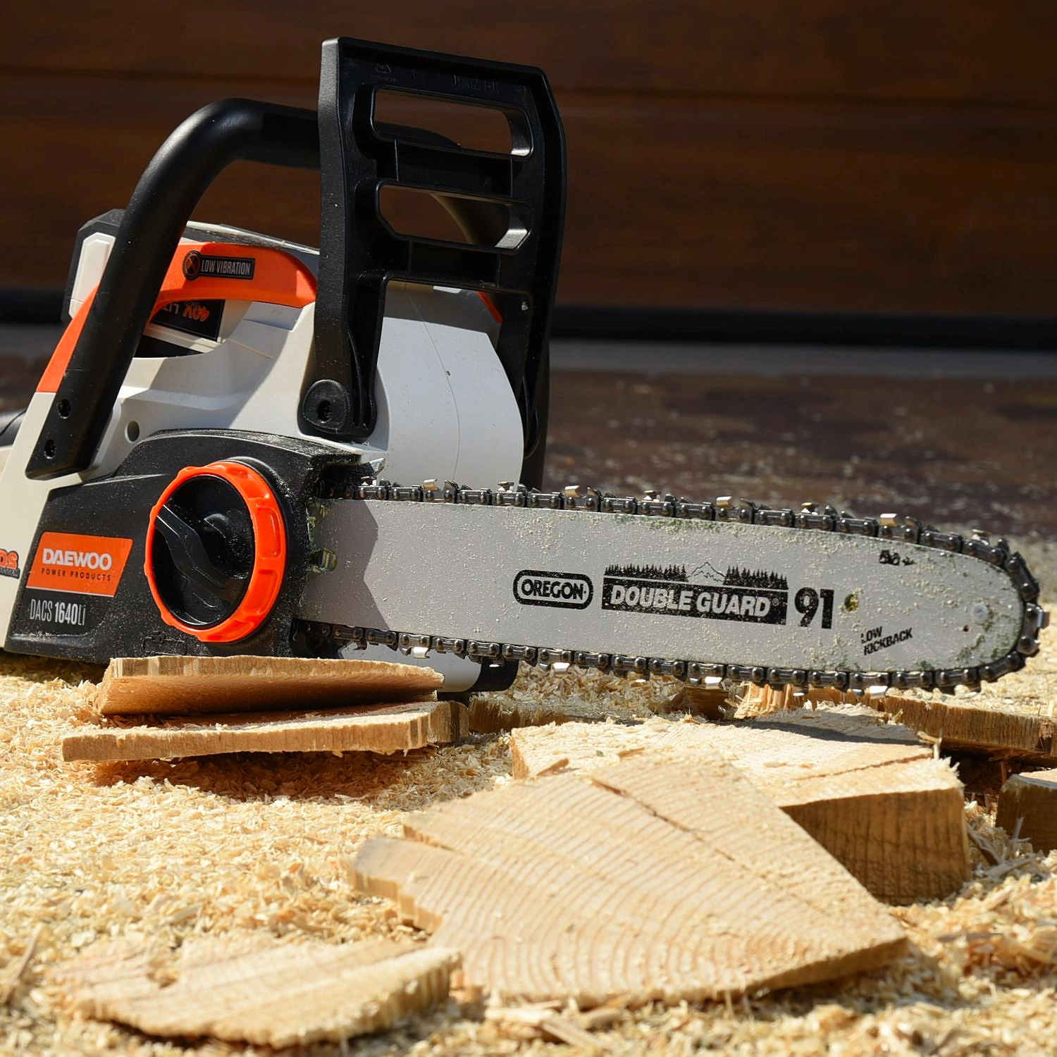 **Аккумуляторная цепная пила DAEWOO DACS 1640Li** - это удобный и практичный садовый инструмент, позволяет легко распиливать стволы и бревна, сучья и ветки.