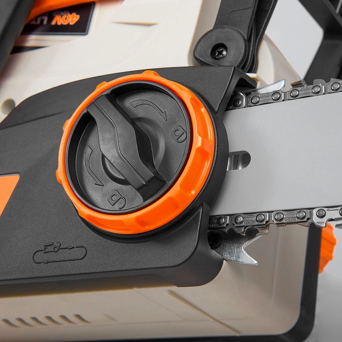 - Металлическая ведущая звездочка гарантирует долговечность и надежность работы пилы.