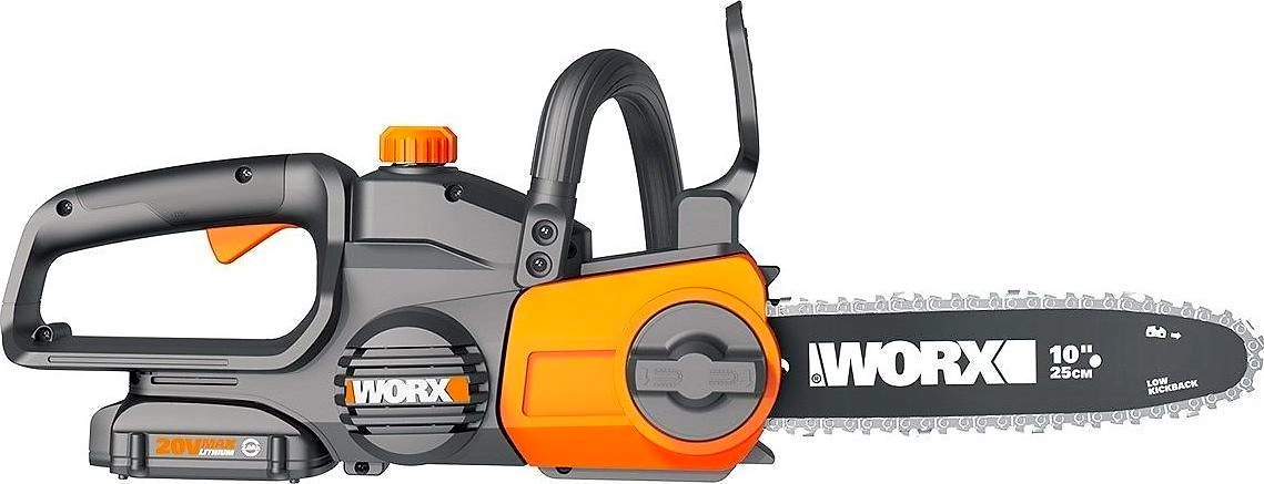 Компактная и легкая цепная пила WORX WG322E.9 обладает достаточной мощностью для заготовки дров и решения любых задач на садовом участке, включая валку деревьев. Питаясь от одного универсального аккумулятора Powershare 20В, пила отлично подходит для работы вдали от электросети.