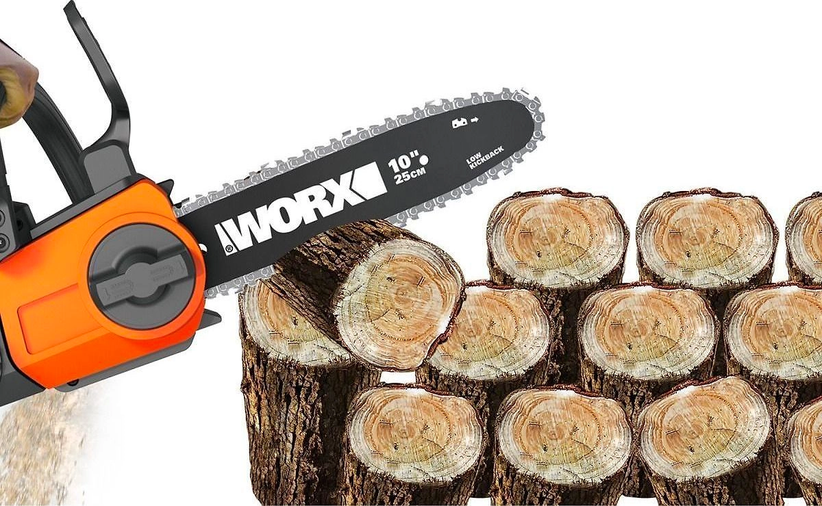 Компактная и легкая цепная пила WORX WG322E.9 обладает достаточной мощностью для заготовки дров и решения любых задач на садовом участке, включая валку деревьев.