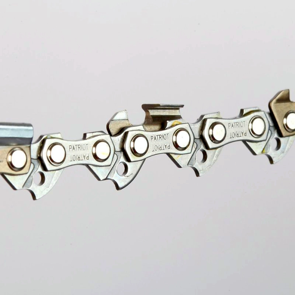 Высококачественная цепь из современных материалов, небольшая отдача и увеличенная производительность. Металл цепи проходит дополнительную термическую обработку для увеличения ресурса и придания прочности. Режущая поверхность зуба имеет риску для индикации критического уровня износа при достижении которого цепь необходимо заменить. Улучшенная система смазки цепи: отверстия и углубления в нижней части ведомого звена захватывают больше смазки, лучше распределяя ее по пазу направляющей шины. В результате, за счет лучшего скольжения снижается износ цепи и шины, увеличивается производительность пиления, снижается расход топлива.