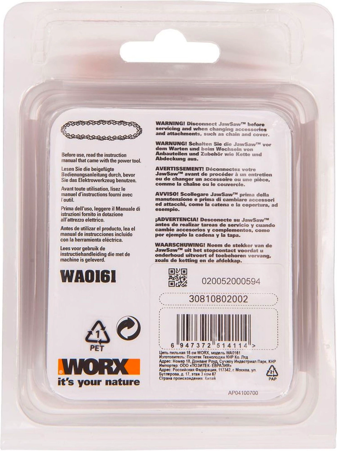 Цепь для пилы WORX WA0161 совместима с цепными пилами WG307E, WG308E, WG320E, WG321E, WG329E.