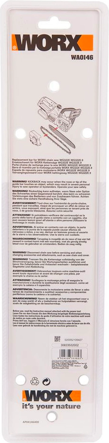 Шина для пилы WORX WA0146 совместима с цепными пилами WG322E, WG322E.9, WG305.