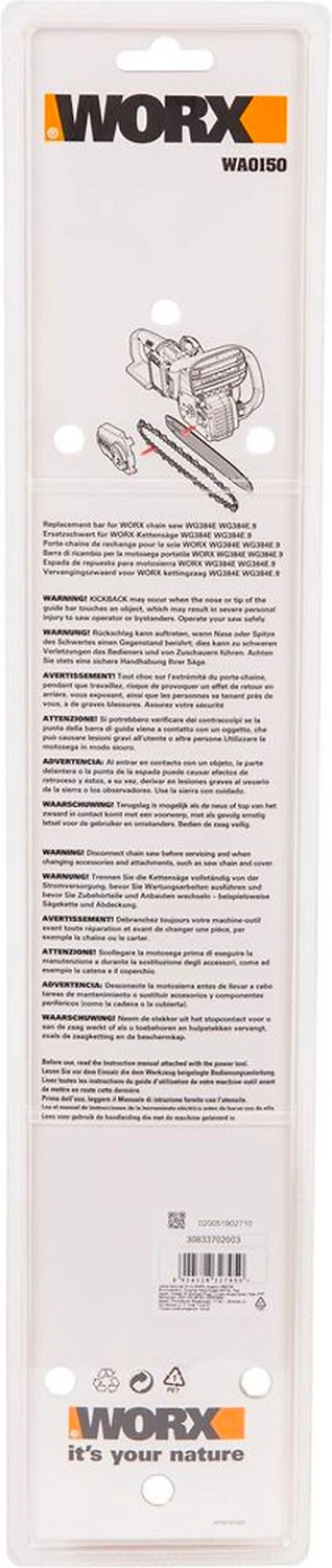 Шина для пилы WORX WA0150 совместима с цепной пилой WG384E.