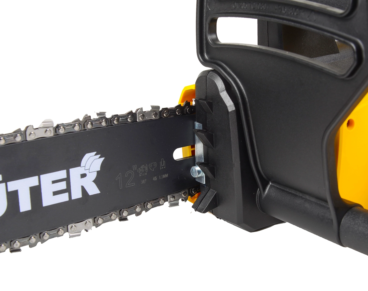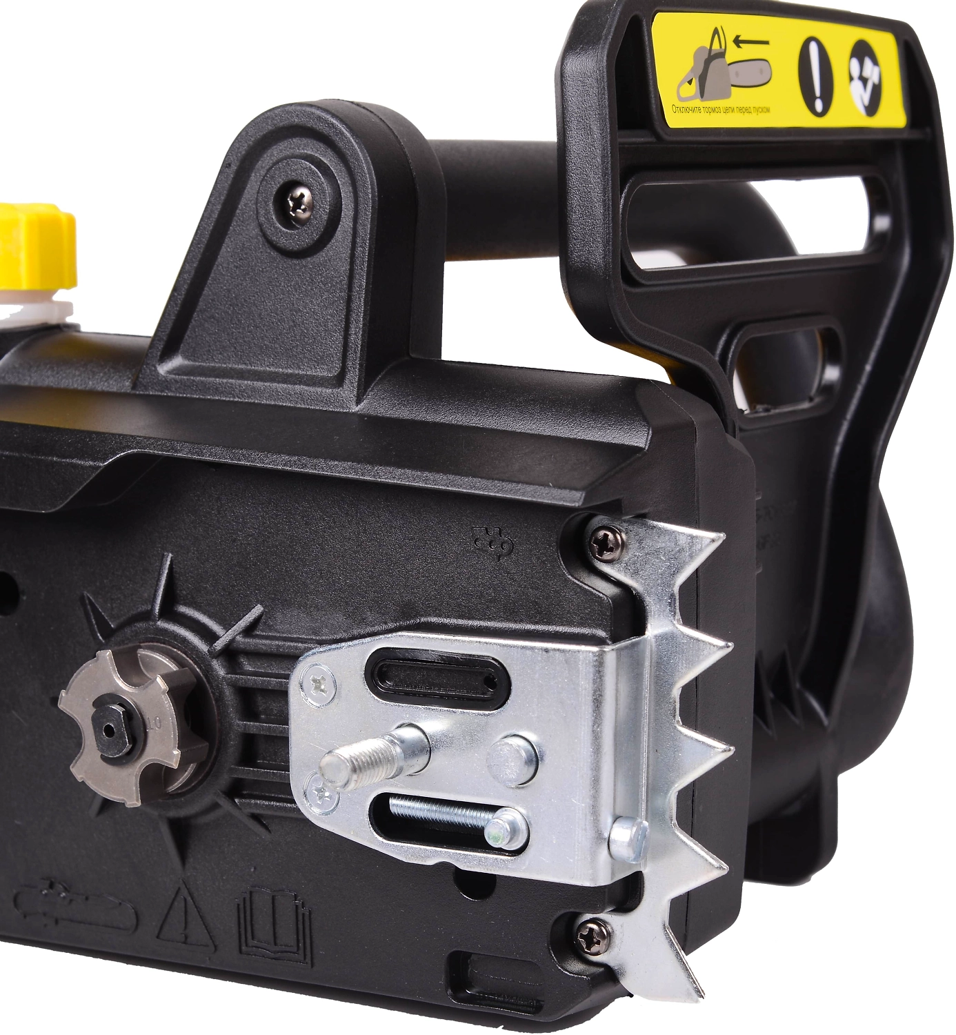 - За счёт зубчатого упора фронтальная часть корпуса пилы не будет повреждаться о ветви и другие элементы;
