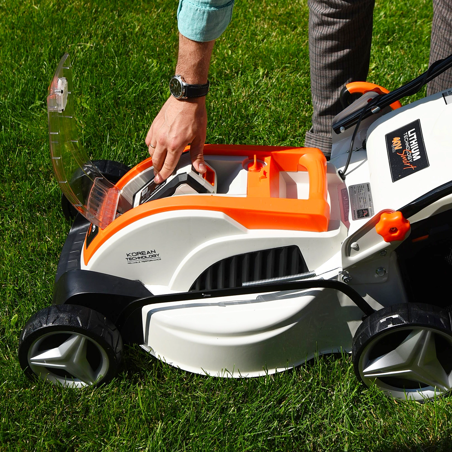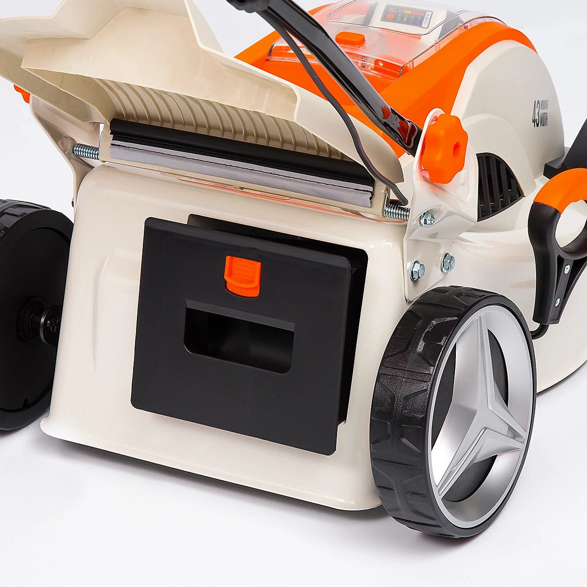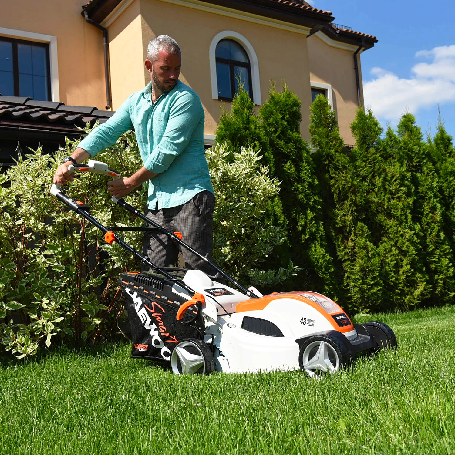 **DAEWOO DLM 4340Li** - компактная и маневренная аккумуляторня газонокосилка для стрижки травы на садовых или парковых участках.
