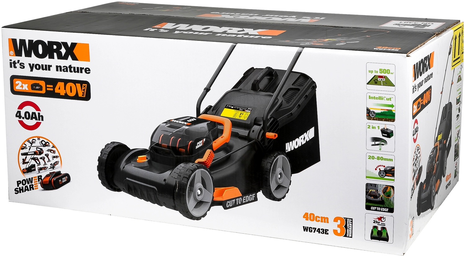 Аккумуляторная газонокосилка WG743E позволяет быстро и качественно обрабатывать газоны площадью от 300 до 500м2. Работая сразу от двух аккумуляторов WORX Powershare, газонокосилка гарантирует свободу перемещения и длительность автономной работы.