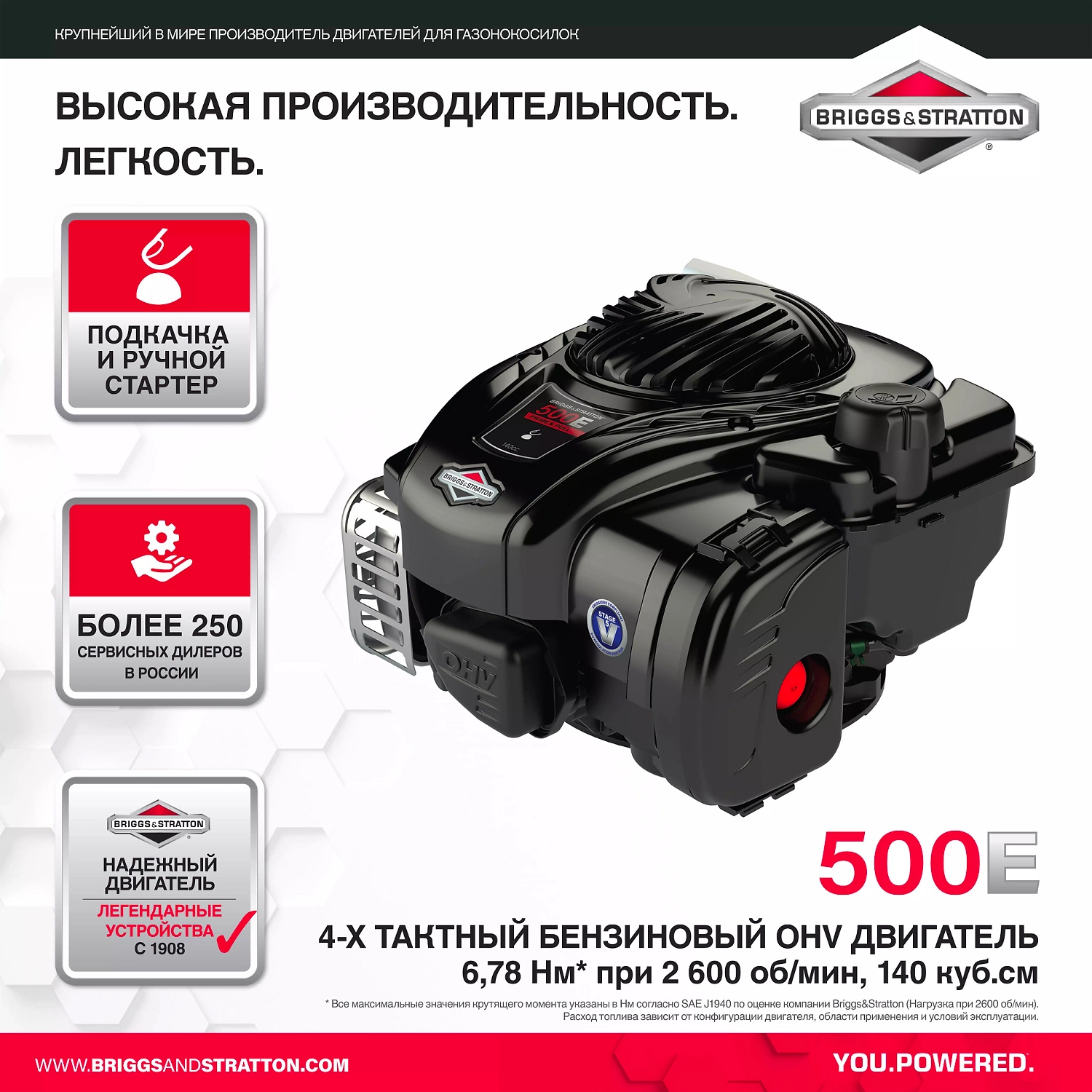 - Ширина скашивания 46 см позволяет быстро подстричь большой участок за малое количество проходов.