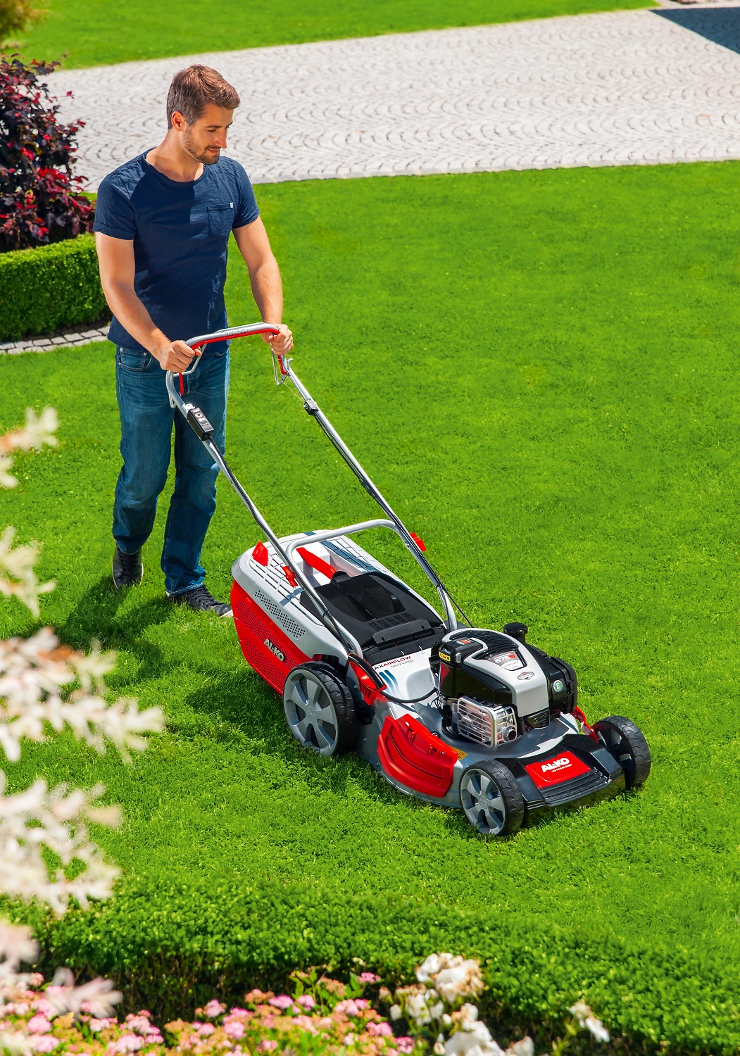 AL-KO 479 SP Highline относится к самоходным бензиновым газонокосилкам линейки Highline Premium. Это полупрофессиональная модель, предназначенная для обслуживания больших участков площадью до 1400 м2. Обладает высокой производительностью благодаря мощному двигателю, травосборнику увеличенного объема и функции 4INONE, позволяющей использовать газонокосилку для различных целей.