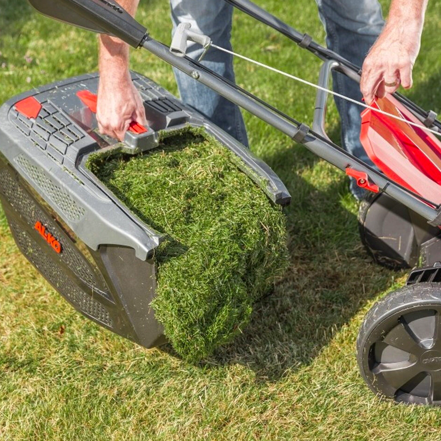 - Травосборник на 75 литров набивается очень плотно благодаря технологии Max Airflow, поэтому делать паузы в работе для опустошения бачка нужно реже.