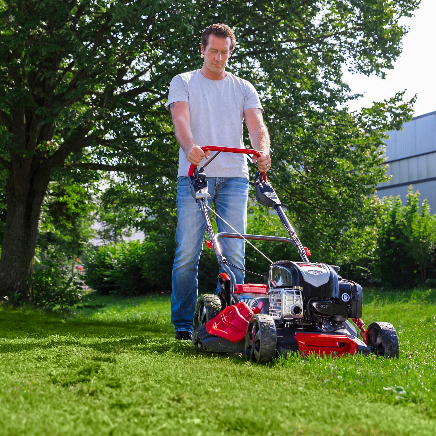- Ширина скашивания 51 см позволяет быстро обрабатывать значительную площадь газона.