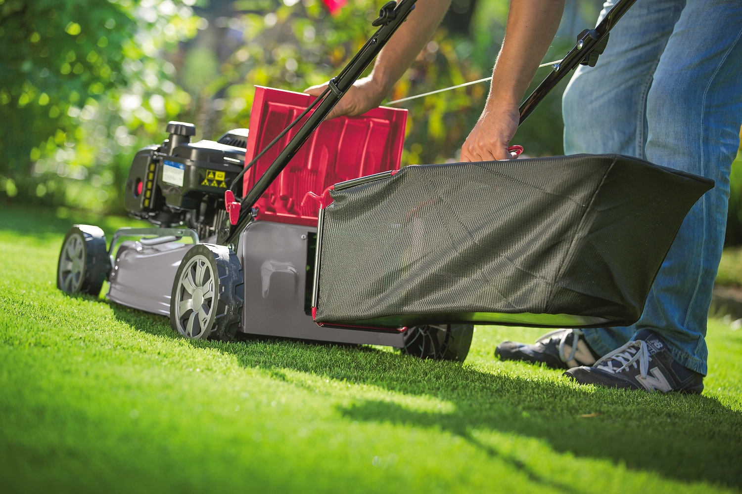 \- Травосборник объемом 55 литров обеспечивает продолжительную работу без остановок.