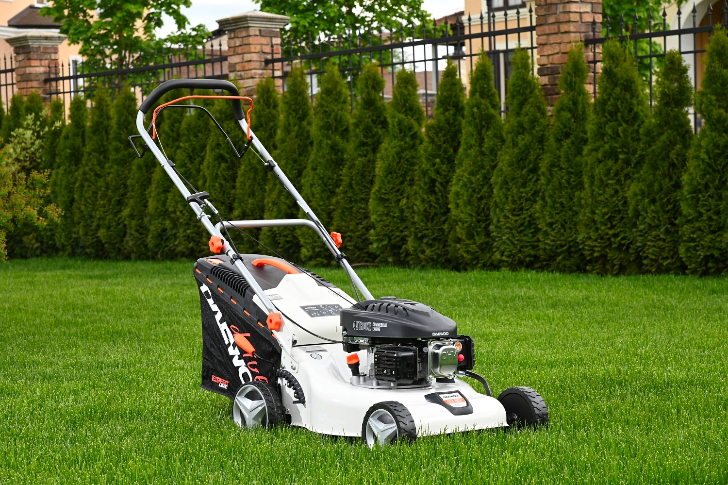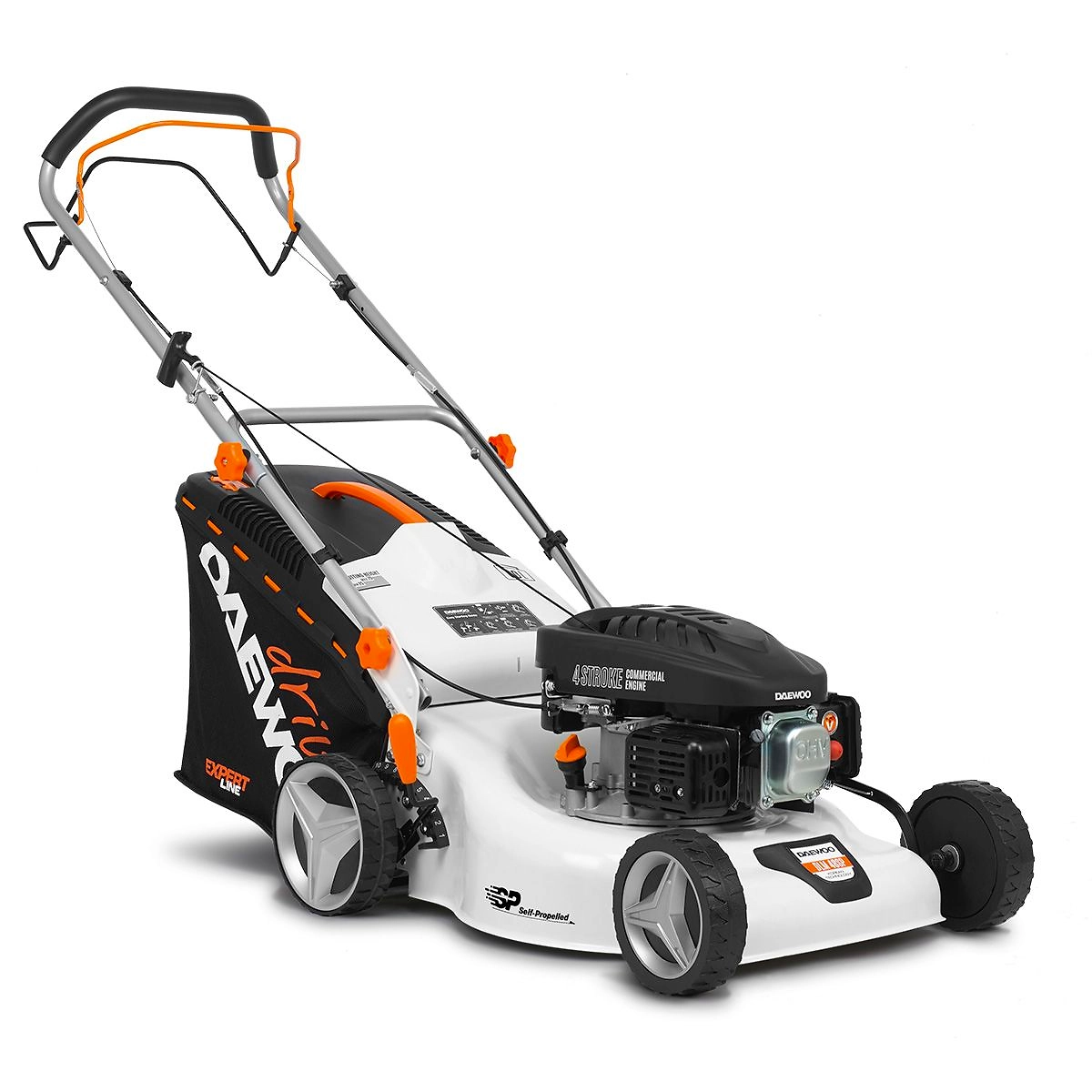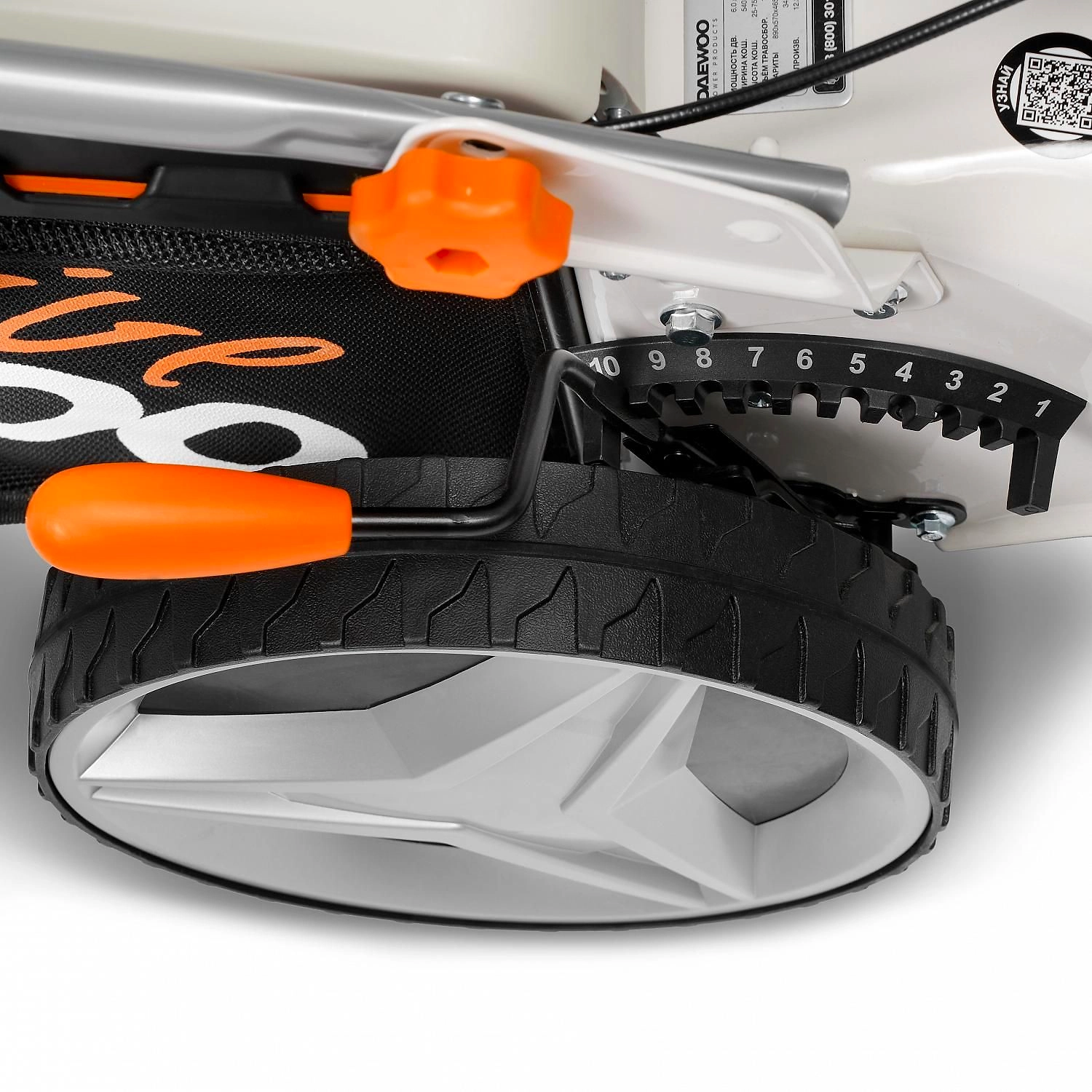 **Бензиновая газонокосилка DAEWOO DLM 48SP** - надежная высокопроизводительная модель, которая отлично подойдет для обработки участков площадью 500-1000 кв. метров.