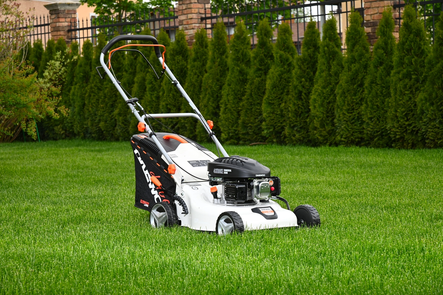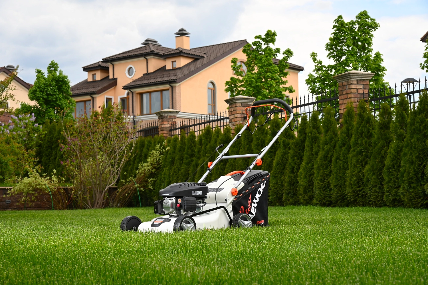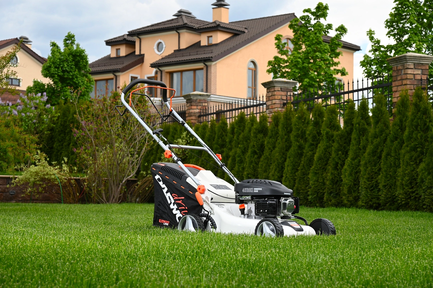 **Бензиновая газонокосилка DAEWOO DLM 48SP** - надежная высокопроизводительная модель, которая отлично подойдет для обработки участков площадью 500-1000 кв. метров.
