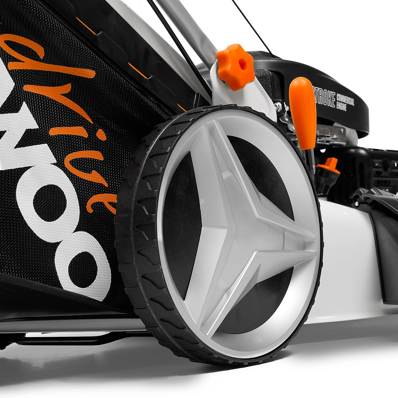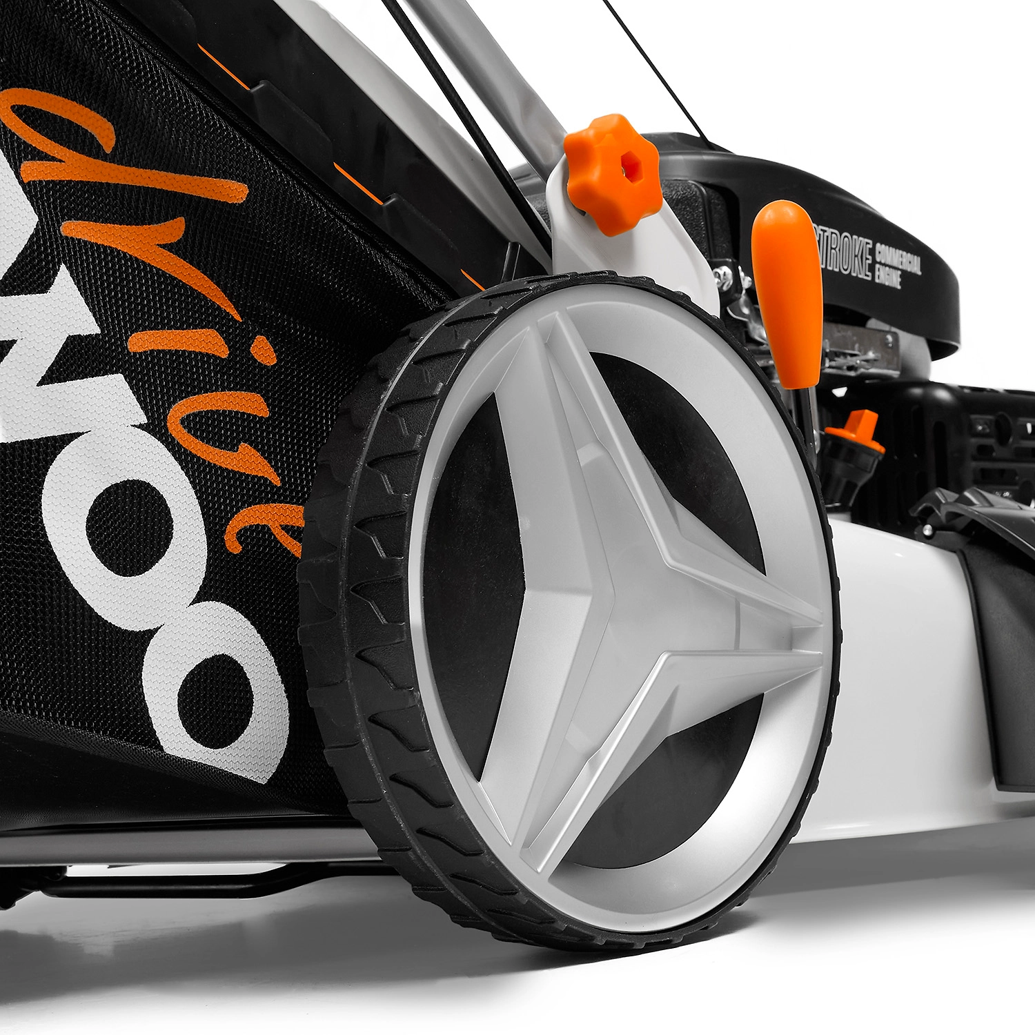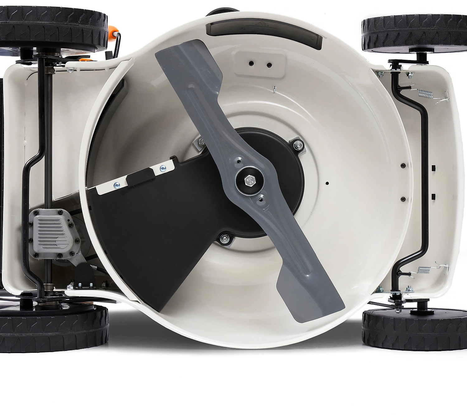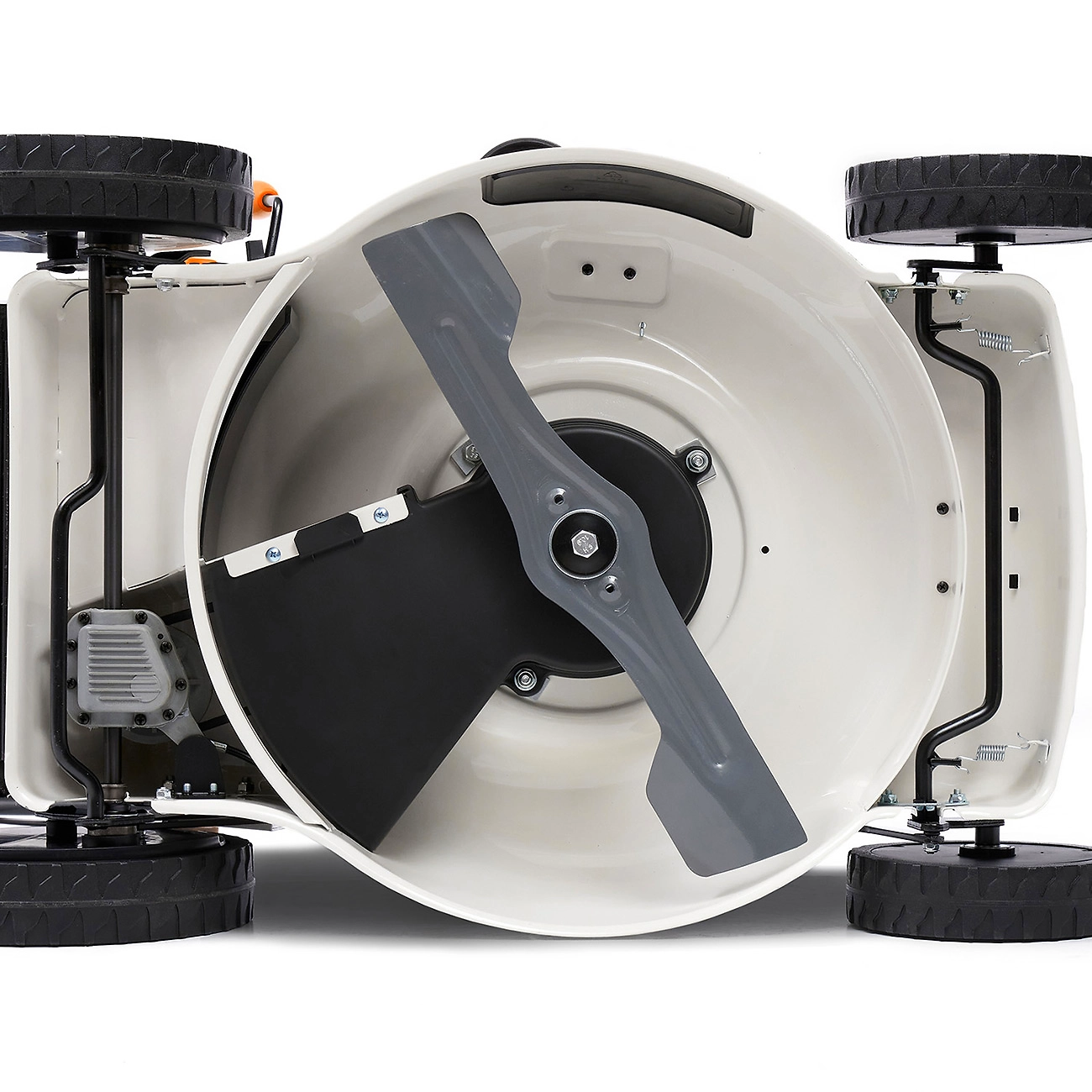 - Стальной турбонож создает мощный воздушный поток, приподнимает траву, увеличивая эффективность кошения на 20%.