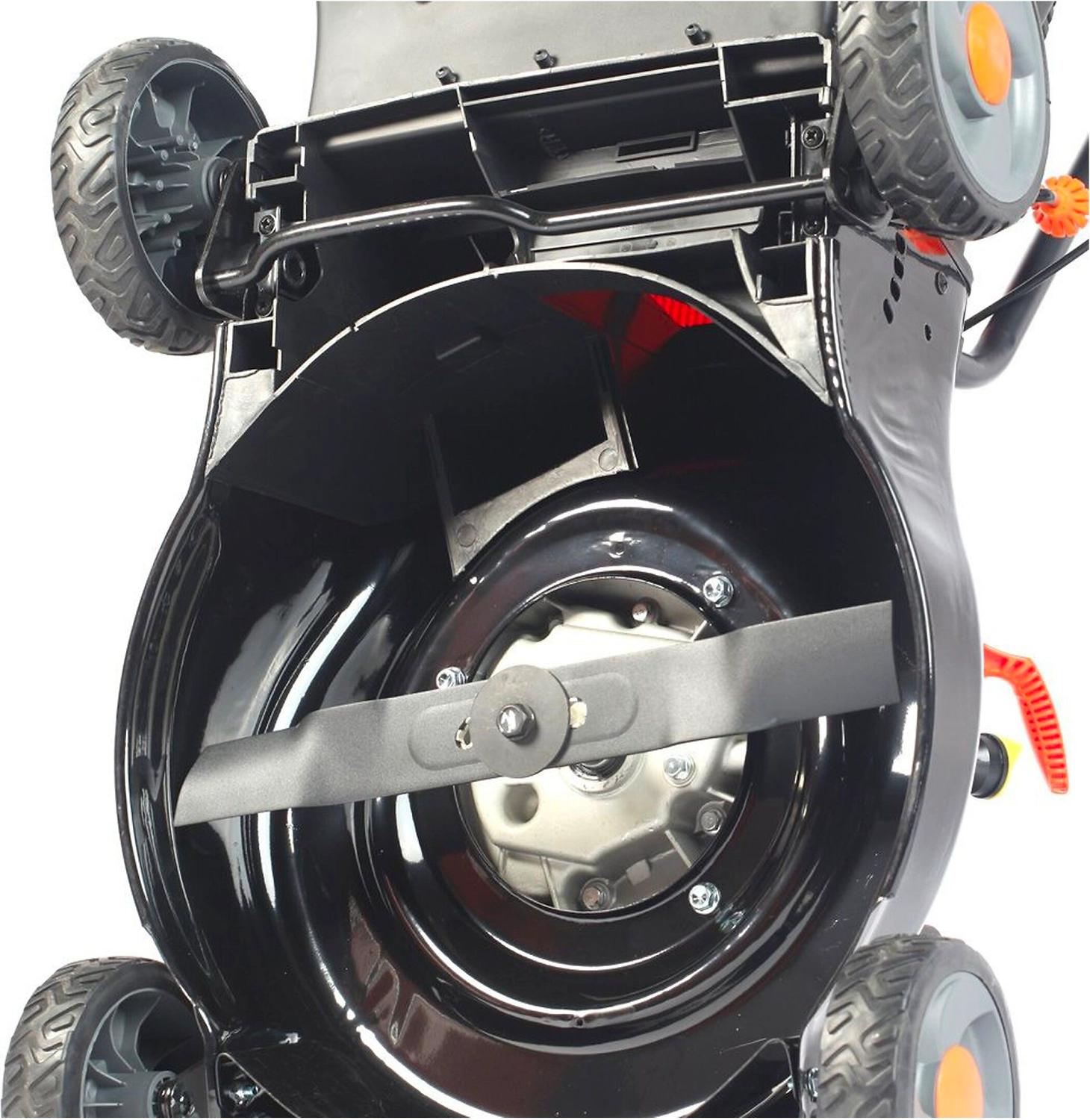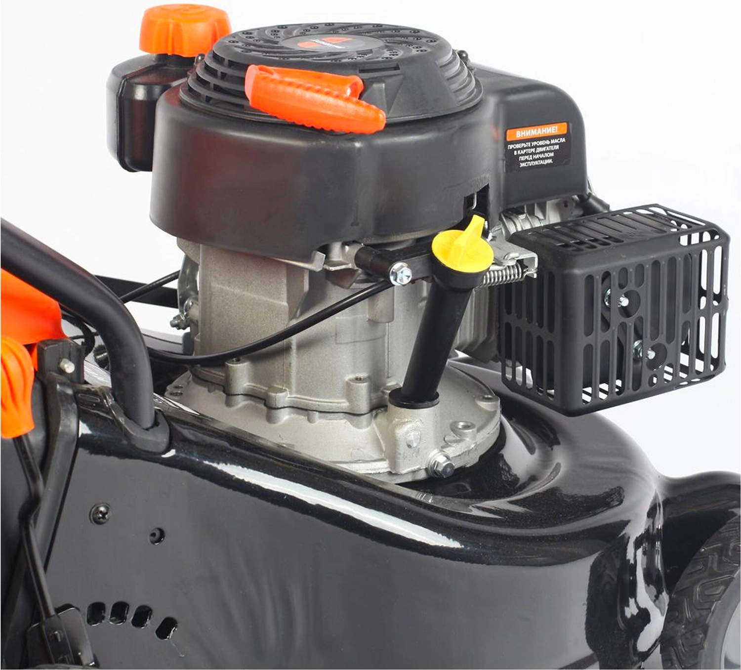 - Предусмотрен рычаг регулировки высоты скашивания от 25 до 75 мм.
