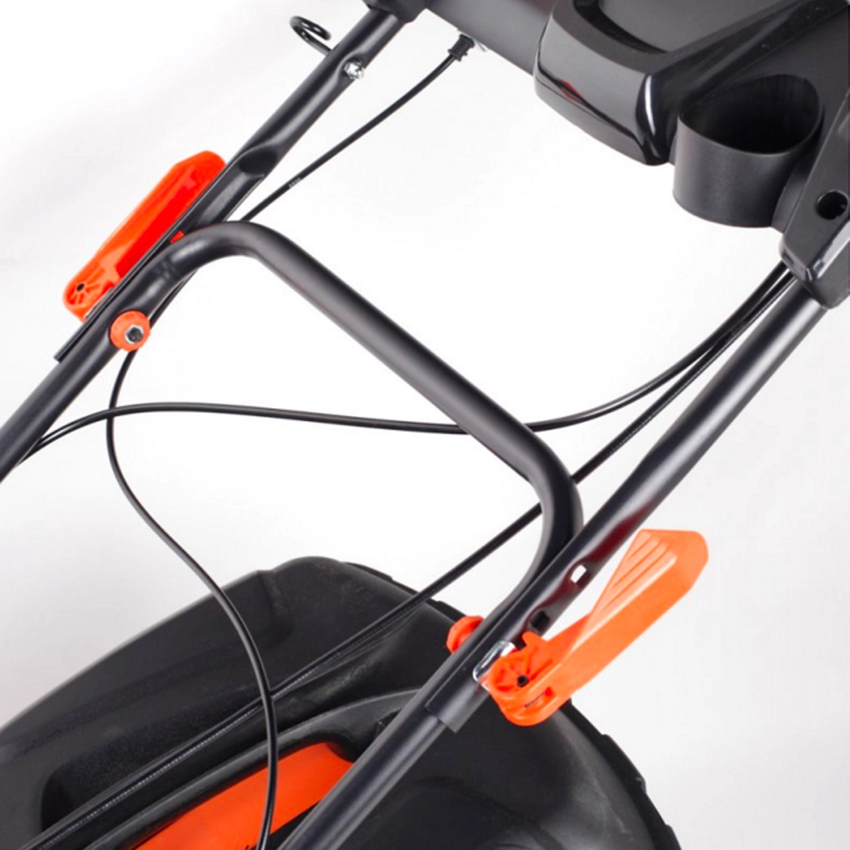 - Для удобства транспортировки и хранения складывается рукоятка и снимается травосборник.