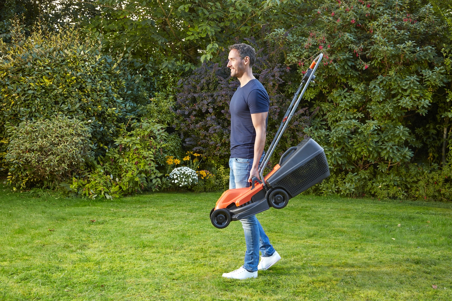 Легкая и мощная газонокосилка для комфортного кошения участка до 250 кв. м от всемирно известного американского бренда. Мощность 1200 Вт достаточна для скашивания не только газонной травы, но и сорняков.