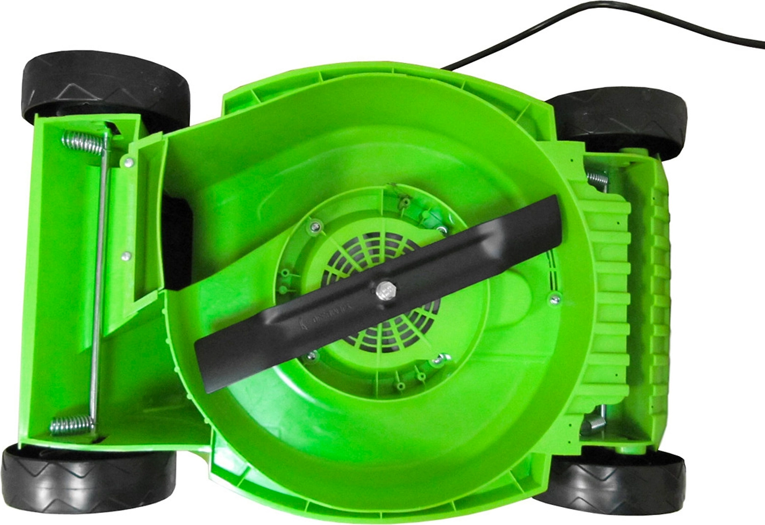 \- Газонокосилка, работающая от электросети, не требует сложного технического обслуживания и не производит вредных выхлопов.