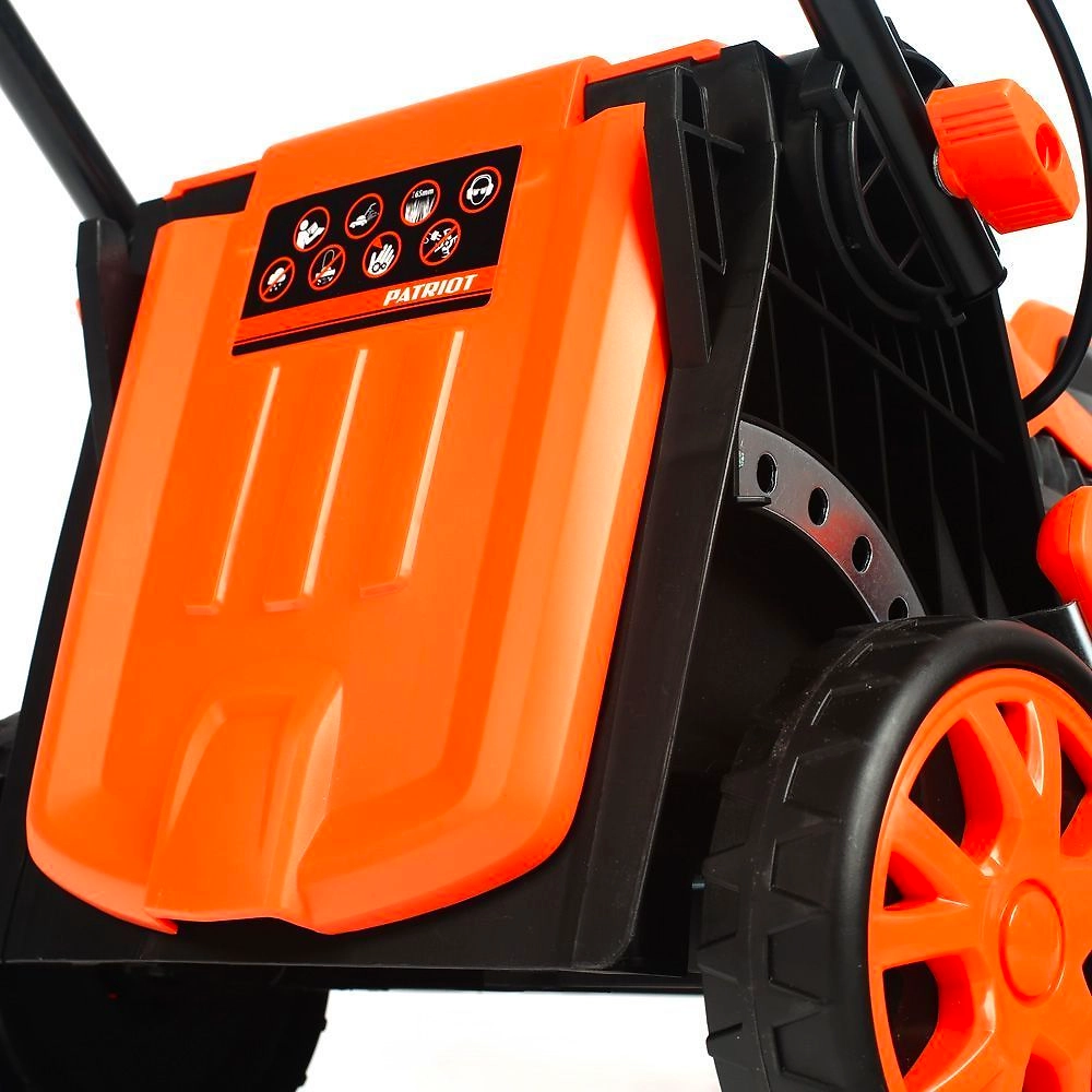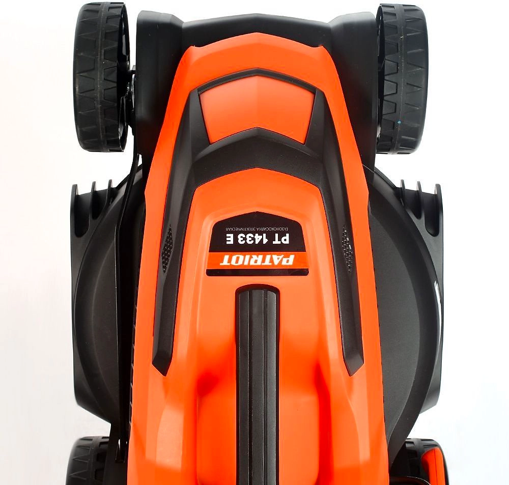 PATRIOT PT 1433E - компактная электрическая газонокосилка с изменяемой высотой скашивания для кошения травы на приусадебных и дачных участках площадью до 900 кв. метров.