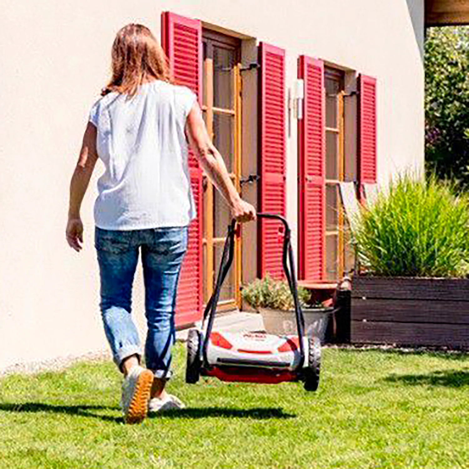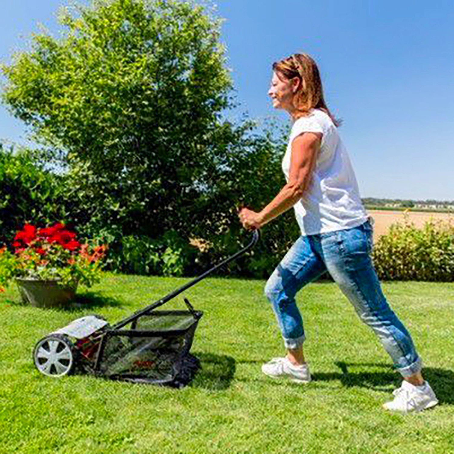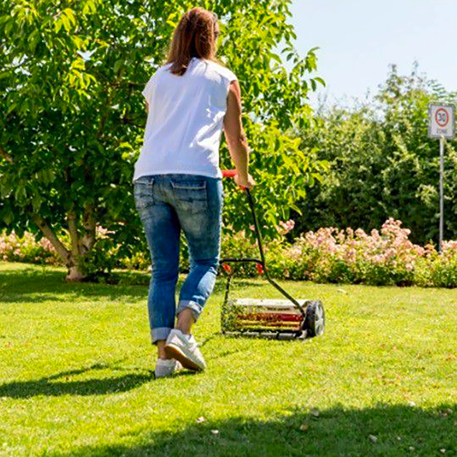 Шпиндельная газонокосилка стрижёт траву аккуратно, как ножницами.