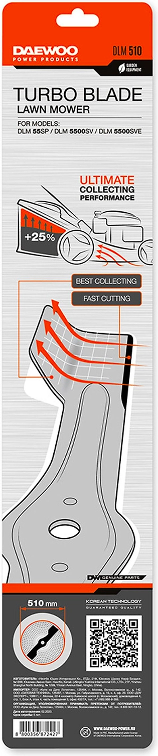 Нож подходит для установки на газонокосилки бренда DAEWOO - DLM 55SP, DLM 5500SV, DLM 5500SVE
