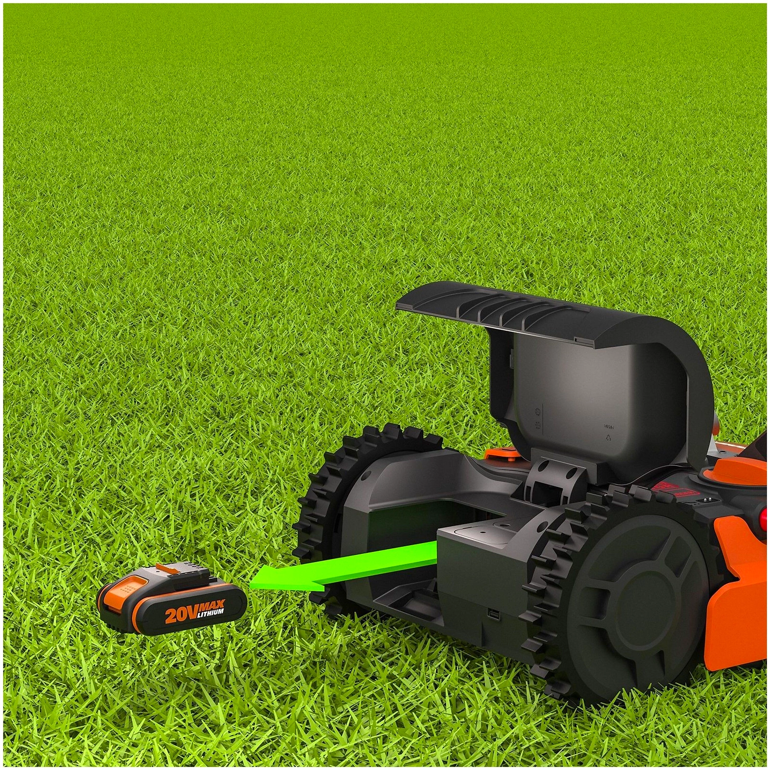 Питание робота осуществляется от универсального аккумулятора WORX Powershare 20В, подходит для всех продуктов Worx 20B и 40В. Нет нужды думать о подзарядке робота зимой - используй батарею в своих инструментах, а летом верни её роботу!