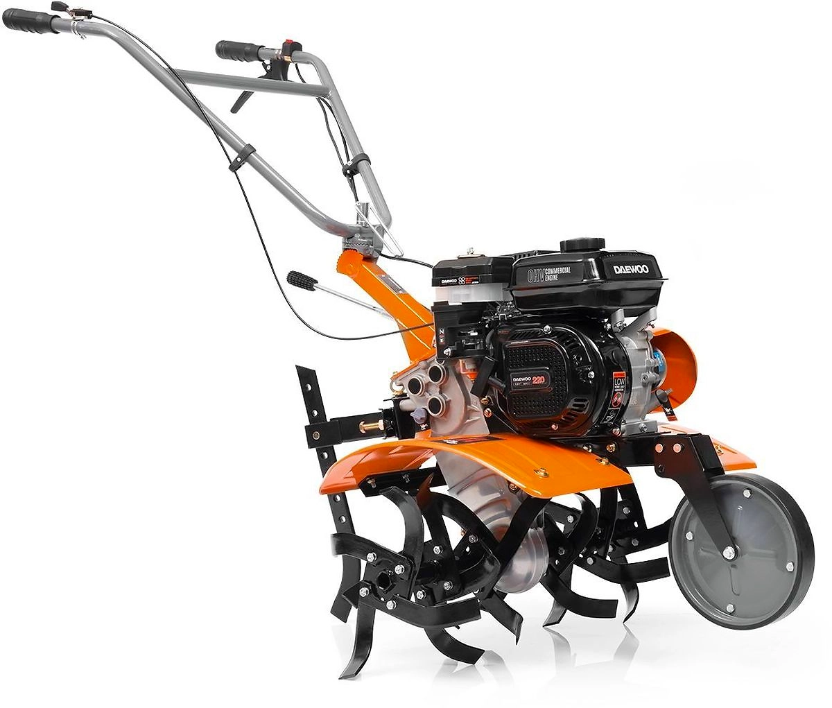DAEWOO DAT 900R - мощный бензиновый культиватор с четырехтактным двигателем в 7,5 л.с и шестью коваными фрезами для обработки почвы, в том числе целинной, глинистой, тяжелой.