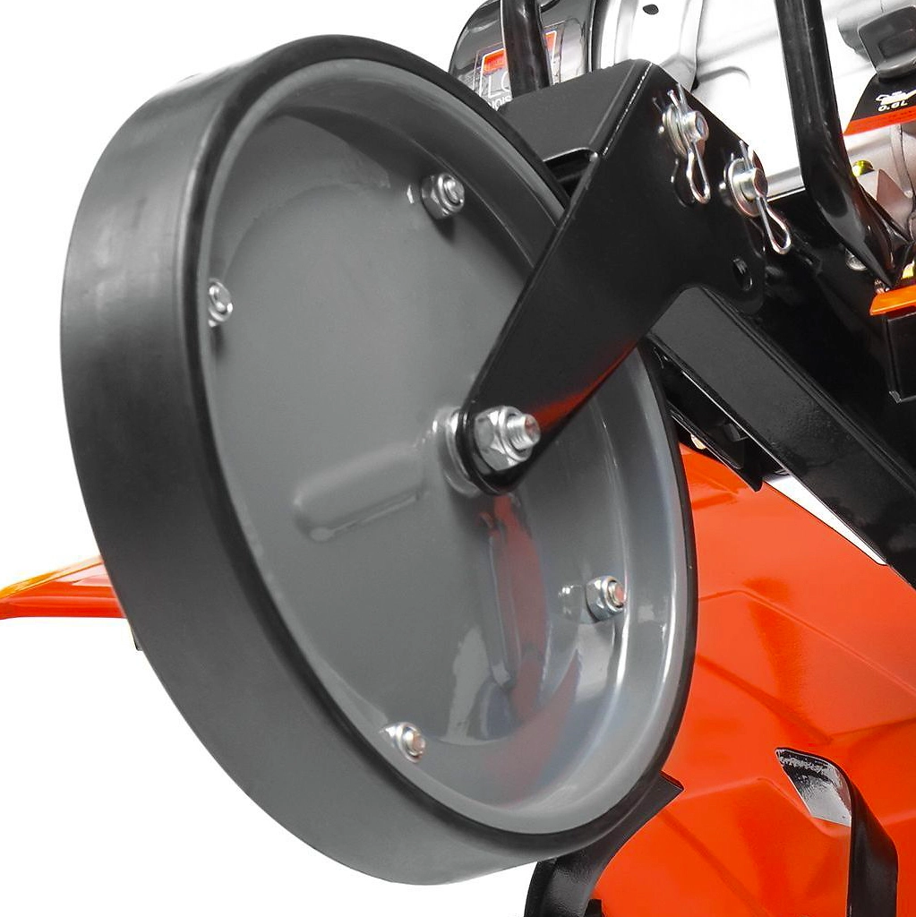 - Для перемещения культиватора по участку предусмотрено колесо.