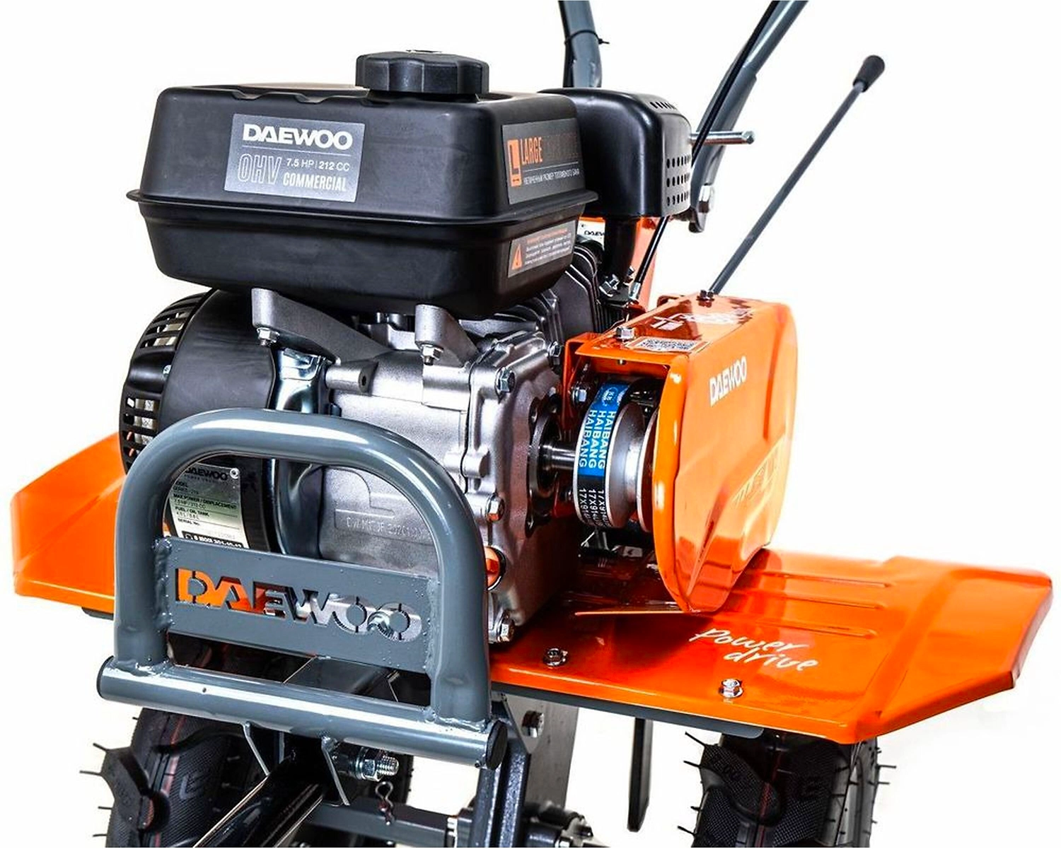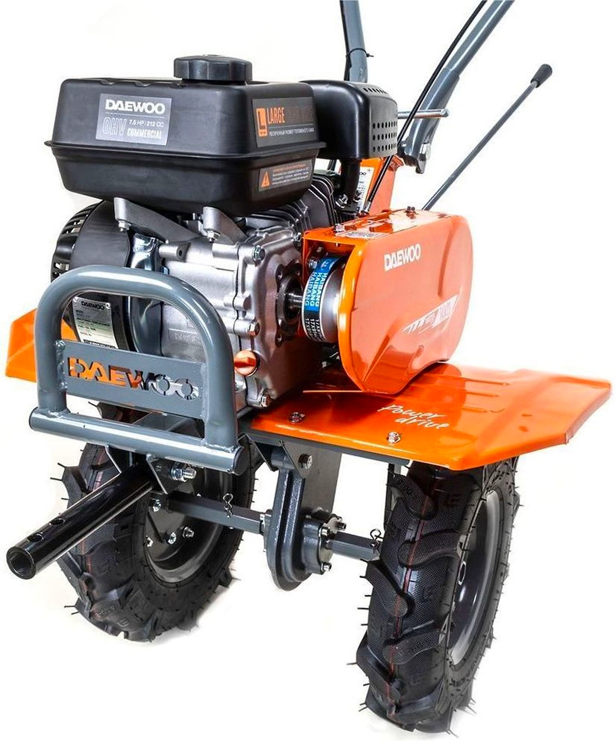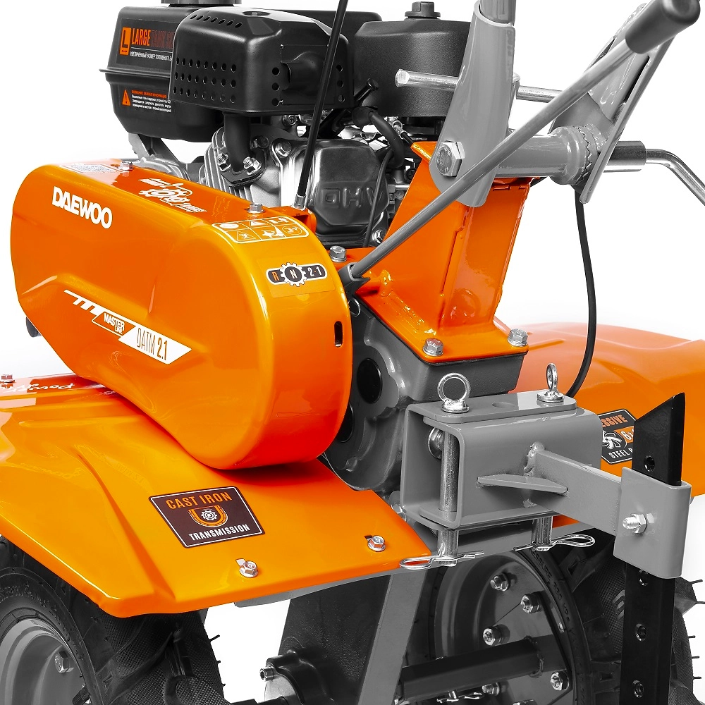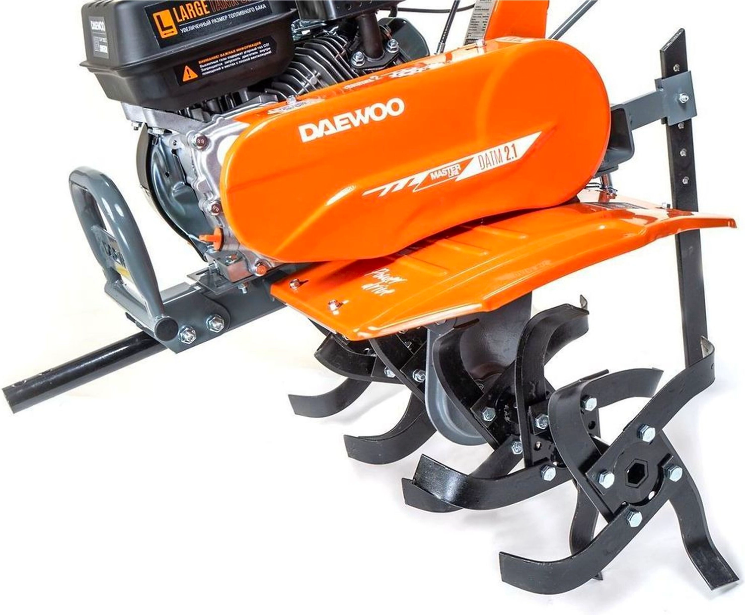 DAEWOO DATM 2.1 - мощный бензиновый мотоблок с двигателем в 7,5 л.с. и большими пневматическими колесами, предназначенный для различных садово-огородных работ.