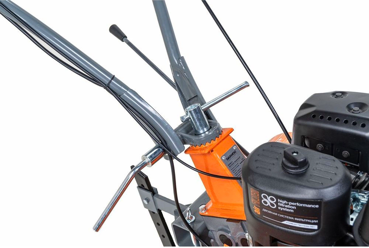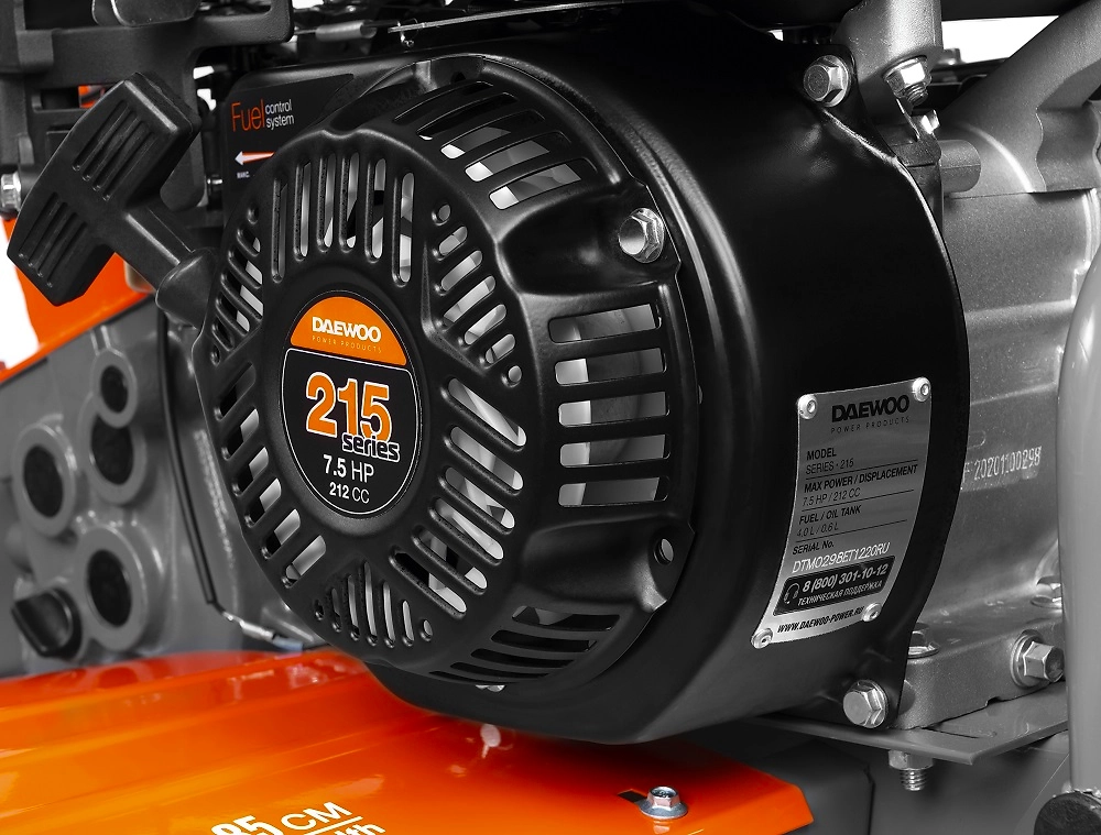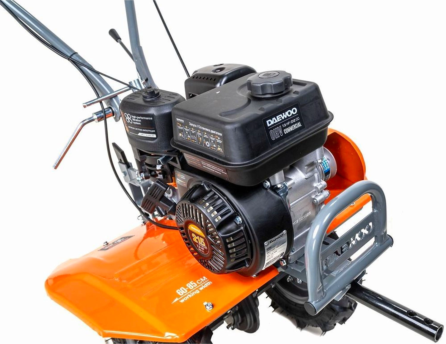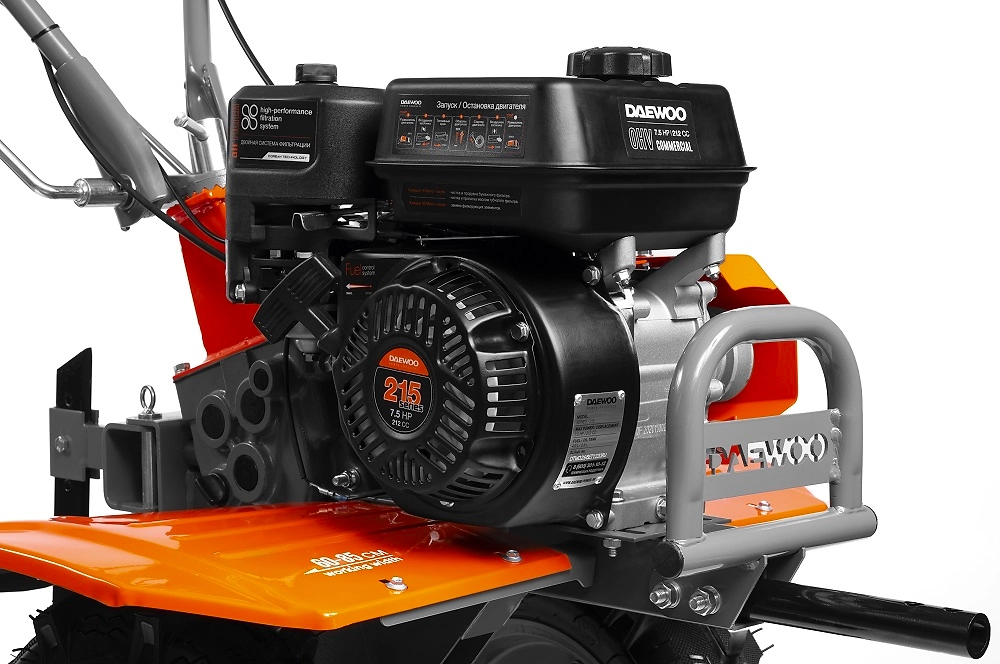 DAEWOO DATM 2.1 - мощный бензиновый мотоблок с двигателем в 7,5 л.с. и большими пневматическими колесами, предназначенный для различных садово-огородных работ.