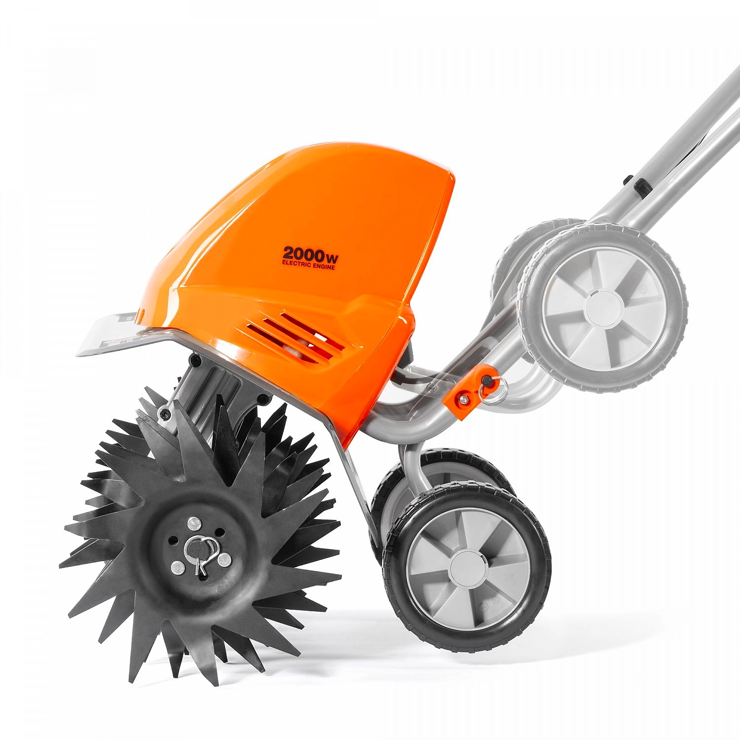 - - Широкие металлические крылья защищают пользователя от попадания земли во время работы, а дополнительные транспортировочные колеса позволяют легко перевозить культиватор по участку.