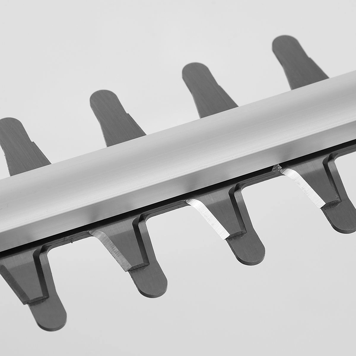 - Двустороннее лезвие с лазерной заточкой. Обеспечивает высокую скорость работы и гарантирует точный и ровный срез даже толстых веток.