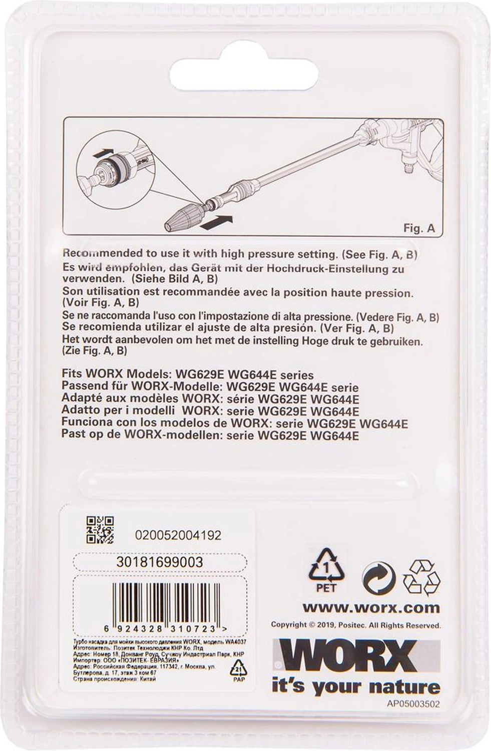 Насадка турбо WORX WA4037 совместима с аккумуляторными мойками WORX Hydroshot.