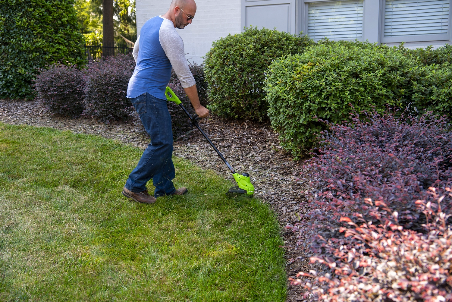 - Аккумулятор, который использует этот триммер, входит в линейку устройств Гринворкс G-24V и его можно использовать с более чем 20 устройствами из этой серии.