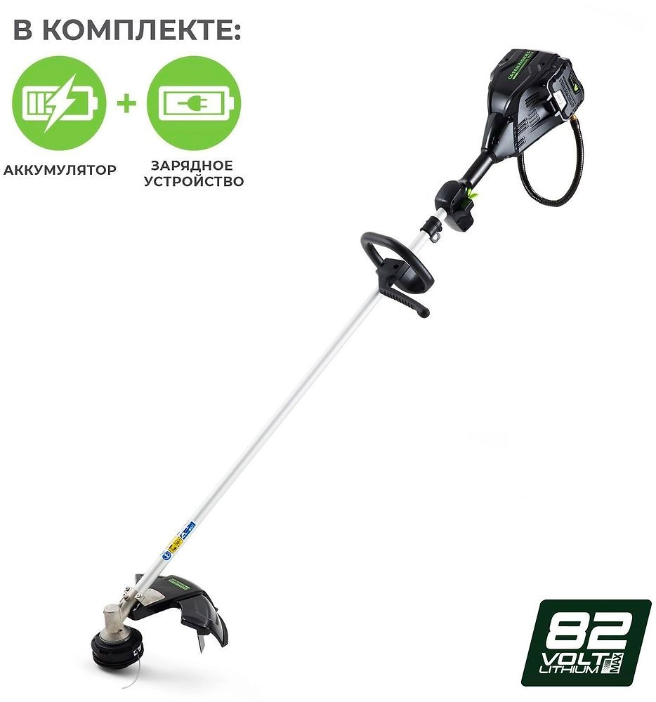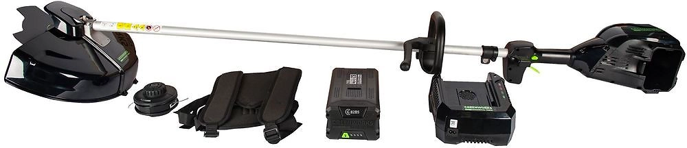 GREENWORKS GD40BCB - легкий аккумуляторный триммер для кошения травы, сорняков и кустарниковой поросли. Инструмент удобен для проходов в узких местах, на неровных ландшафтах, площадках с уклоном. Ширина скашивания 40 см позволяет быстро обрабатывать большие площади.