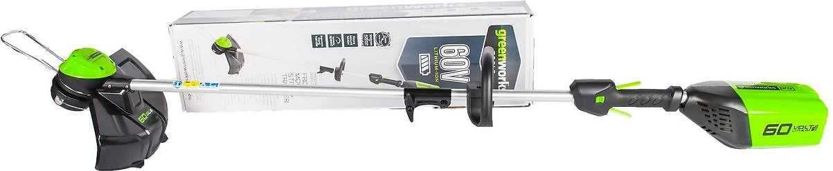 Аккумуляторный триммер Greenworks GD60LT 60 Вт - компактный, легкий и удобный в управлении инструмент, для работы с которым не требуется наличие стационарной электросети.