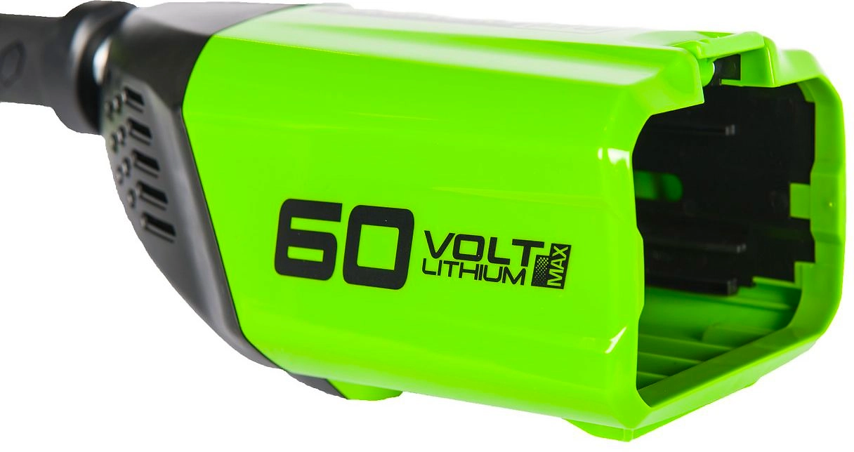 - Модель с аккумуляторной батареей 60 В является идеальным вариантом для работ в труднодоступных местах.