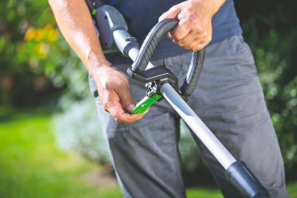 - Для работы вокруг стволов деревьев и клумб предусмотрен специальный ограничитель, защищающий растения от повреждений леской или ножом.