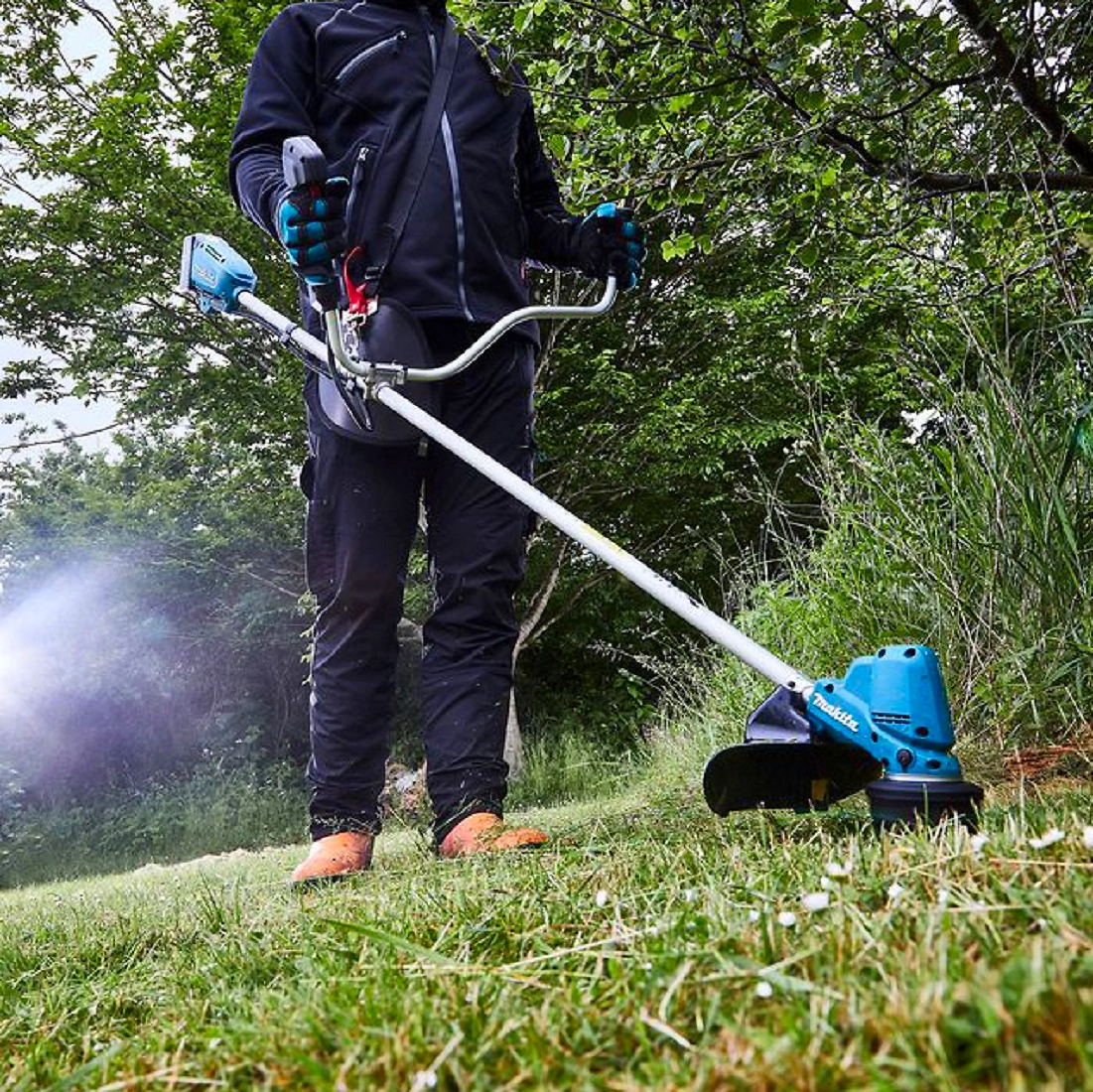 Makita DUR190UZX3 - аккумуляторный триммер для быстрого и эффективного кошения травы в недоступных для газонокосилки местах: вокруг деревьев, у стен, заборов, дорожек, под мебелью и по краям газона.