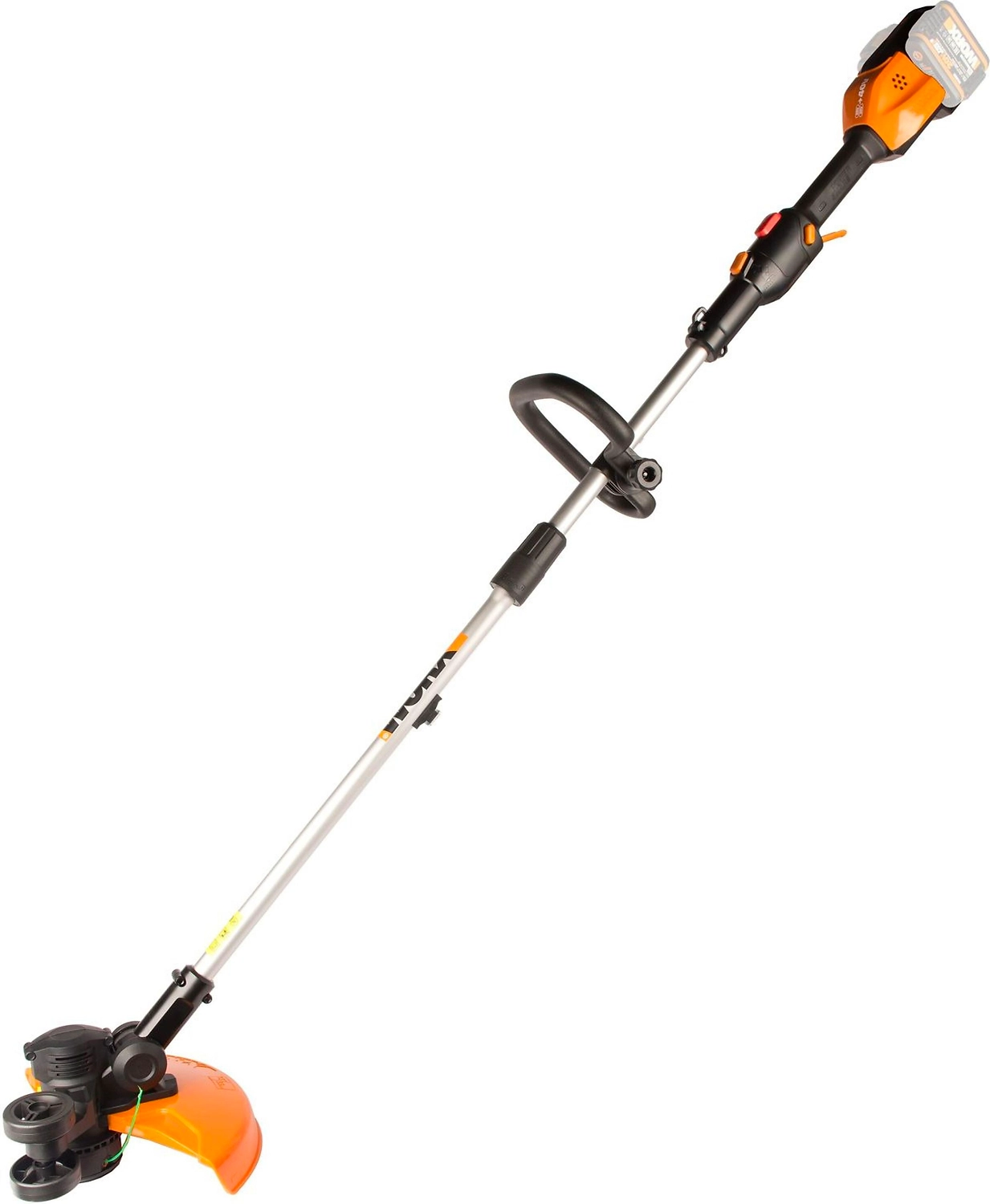 Аккумуляторный триммер WORX WG183E.9, работающий от двух аккумуляторов 20В. Command Feed - Автоматическое удлинение лески. 2 в 1 - триммер и кромкорез.
