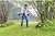 - Устройство легко справляется с травой и жестким кустарником с помощью лески с рабочей шириной 42 см и стального ножа диаметром 25 см.