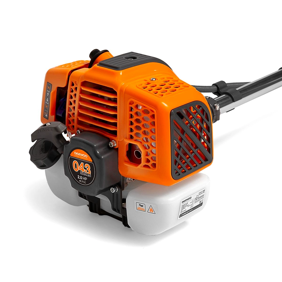 - Мощный двухтактный двигатель DAEWOO разработан специально для садовой техники, расположен вверху, отличается легким техническим обслуживанием.