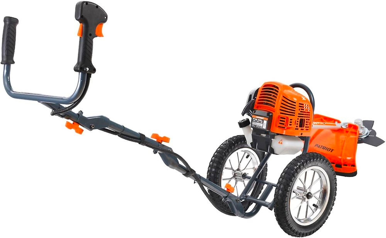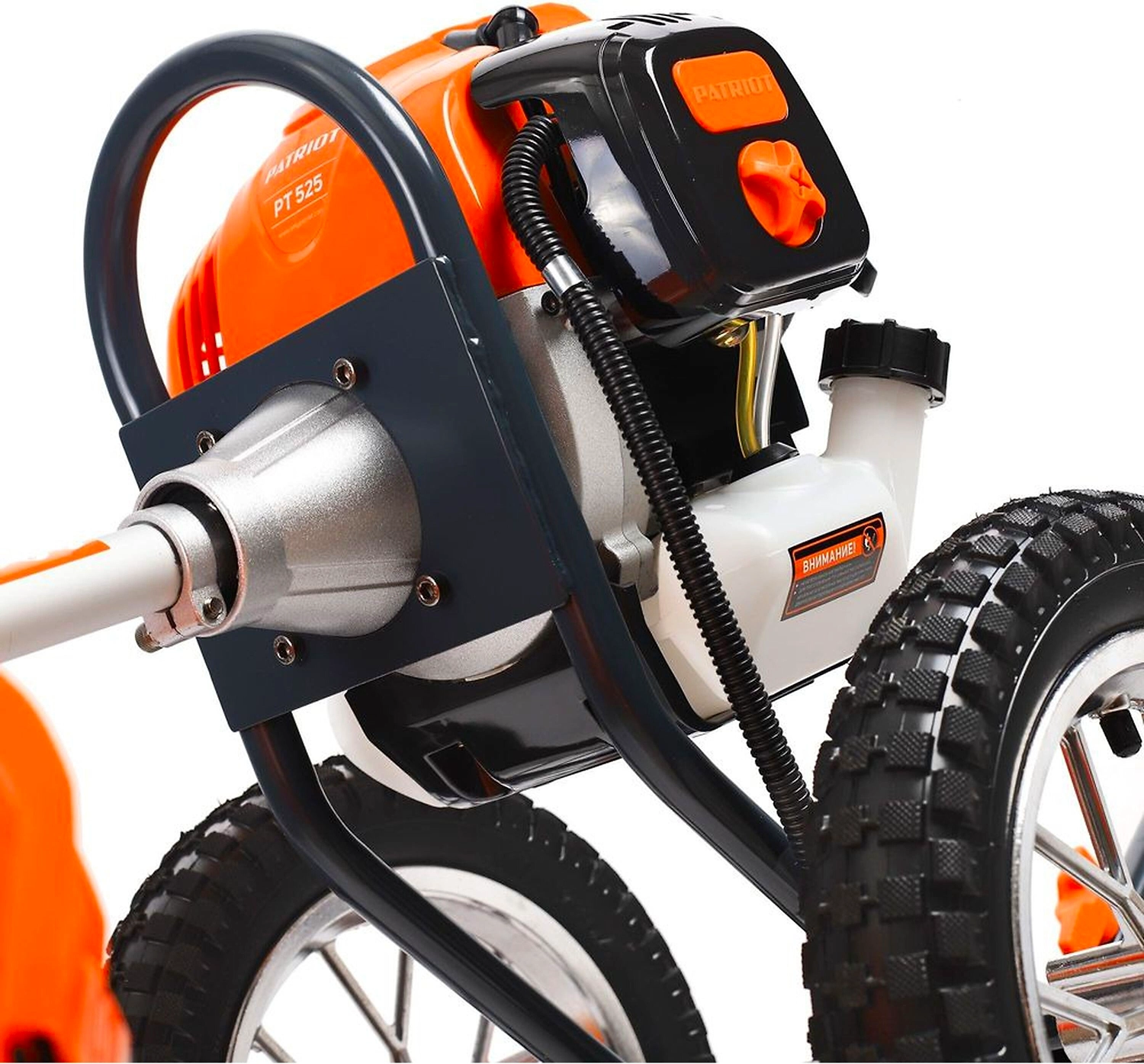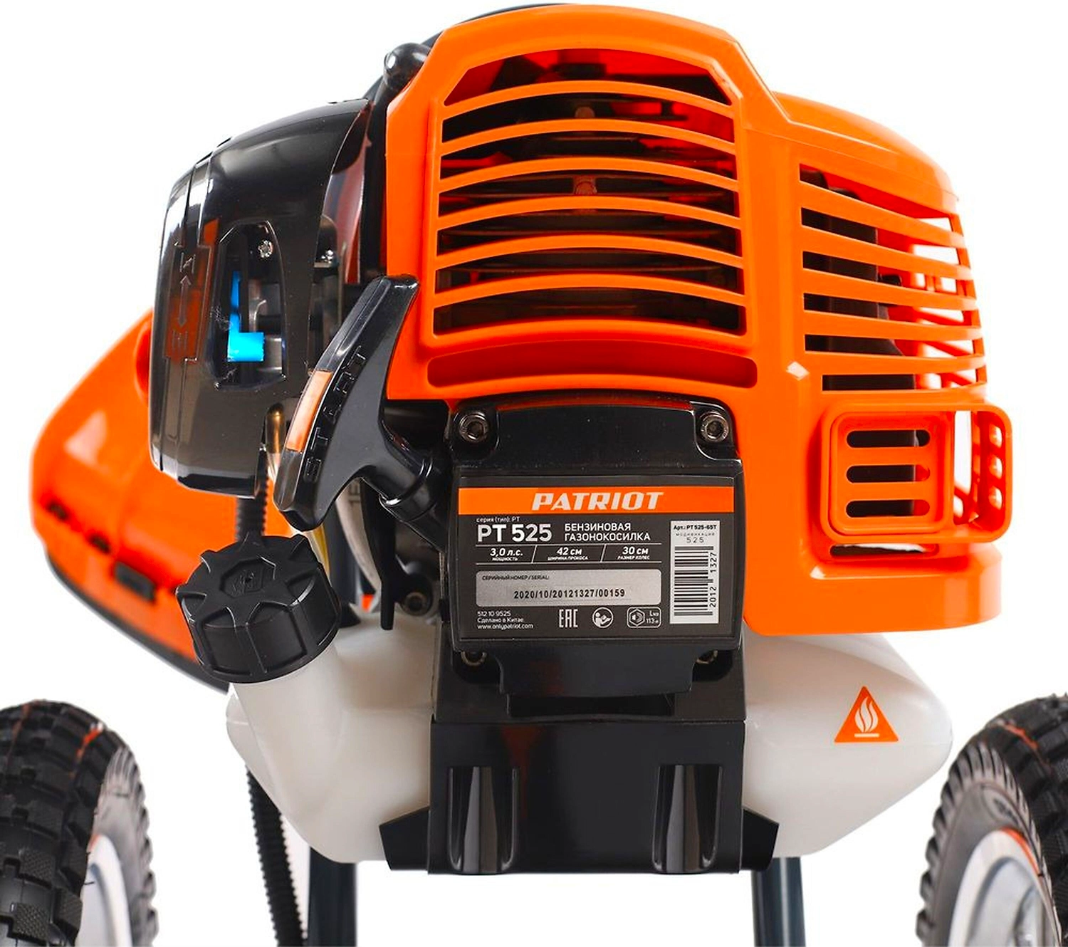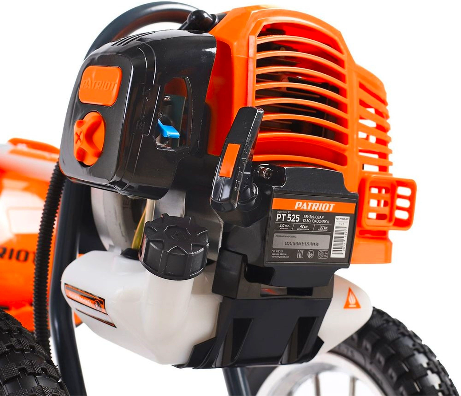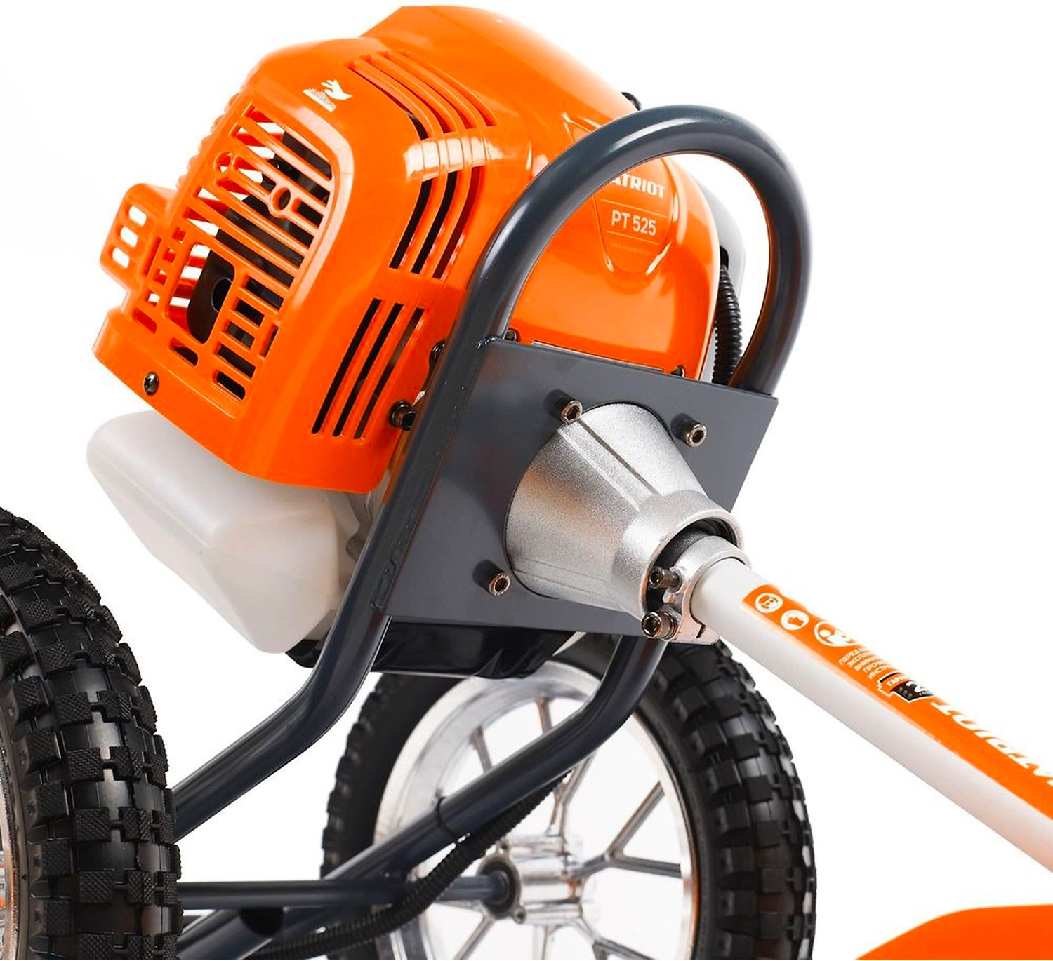 PATRIOT PT 525 - мощный и маневренный колесный триммер с бензиновым двигателем для скашивания травы на сложных участках: возле деревьев, стен и заборов, на неровных газонах.