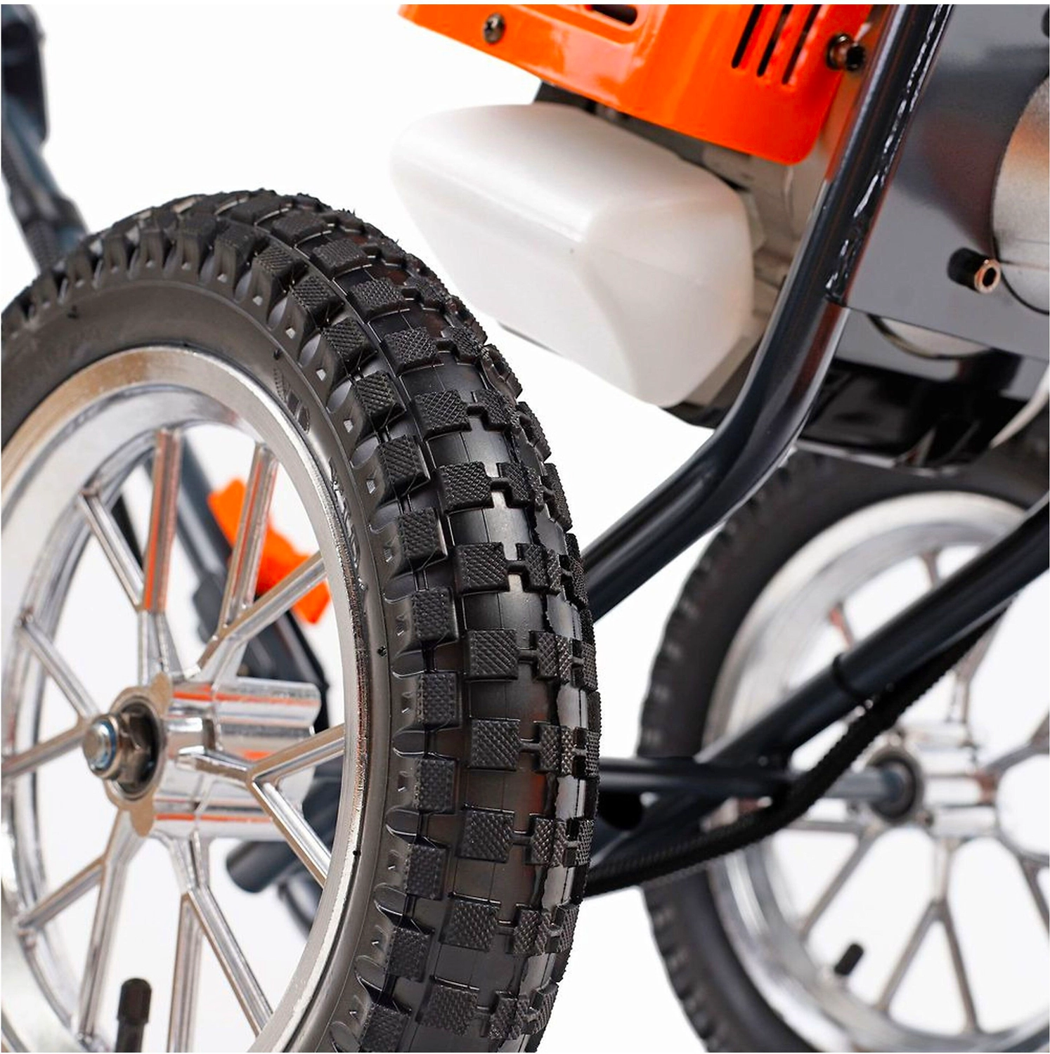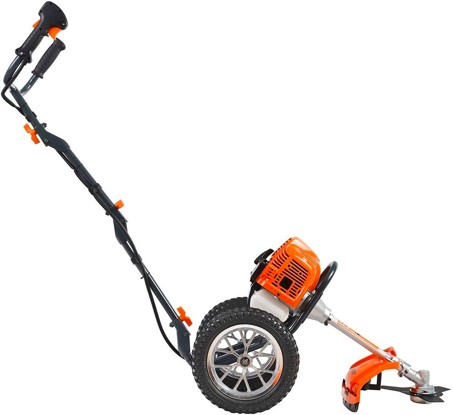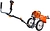- Большие колеса снижают нагрузку на руки оператора, обеспечивают триммеру высокую проходимость.