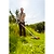 - Предусмотрено использование двух видов насадок: триммерной головки с нейлоновой леской для травы и сорняков, трехлопастного стального ножа для кустарников и деревьев.